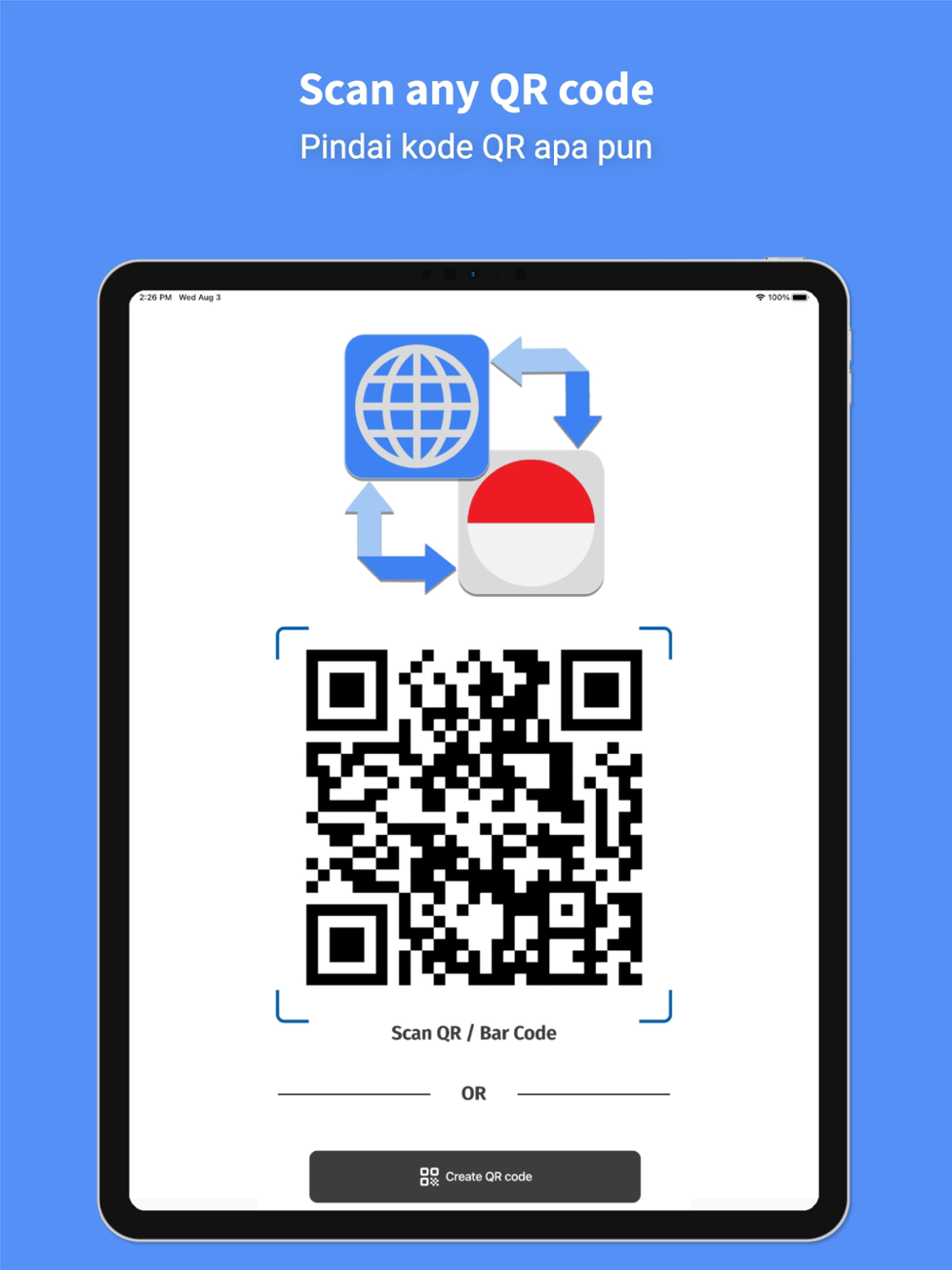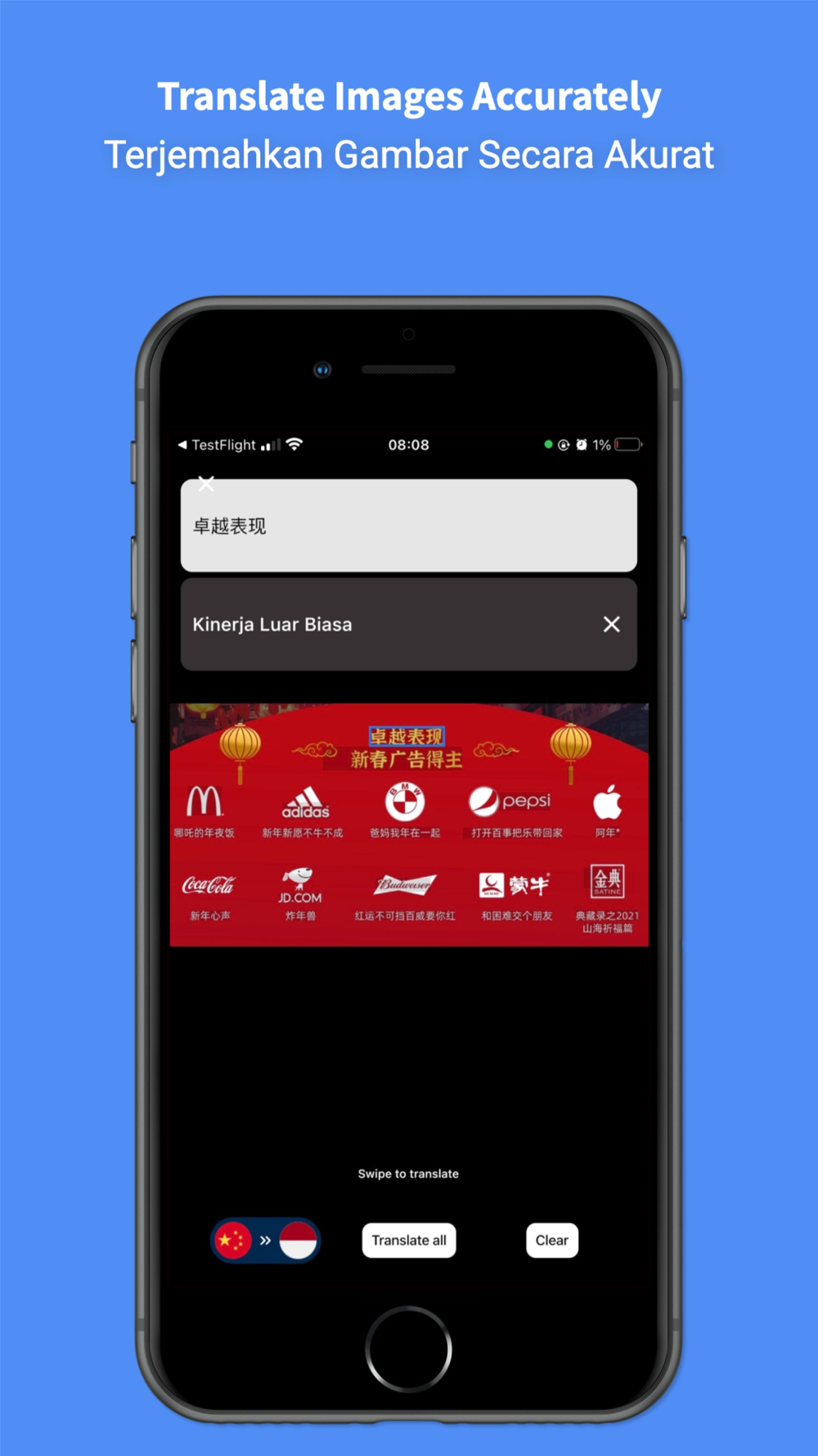 • Use your camera to instantly translate menus or signs and more from any language to indonesian.