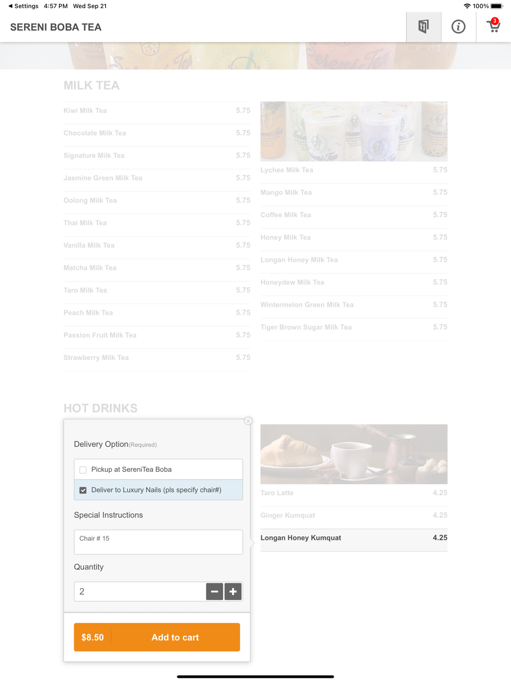 A simple and quick way to grab a drink at Sereni Tea Boba store.