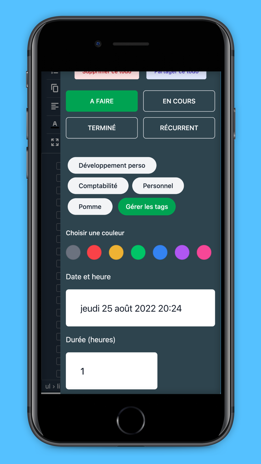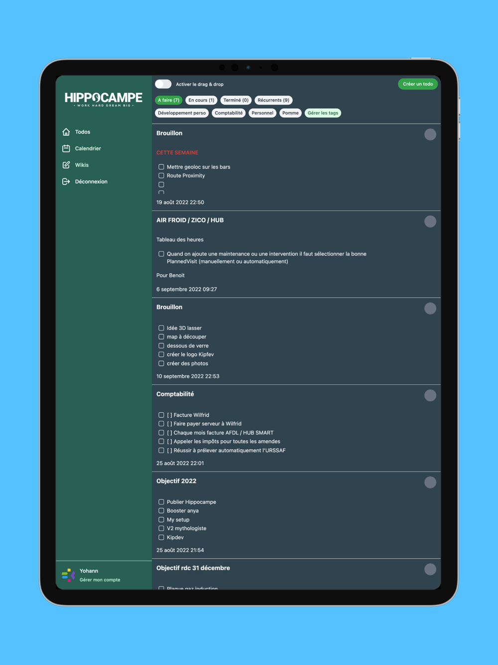 Vos todos sont affichés sur un calendrier, votre todo peut être récurrent ou non. Tout est possible.