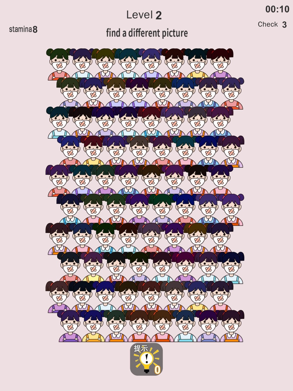 This is a simple find the difference game, there is a different picture in multiple pictures, find it and click it to pass the level. Unlimited levels and different pictures are waiting for you to challenge.