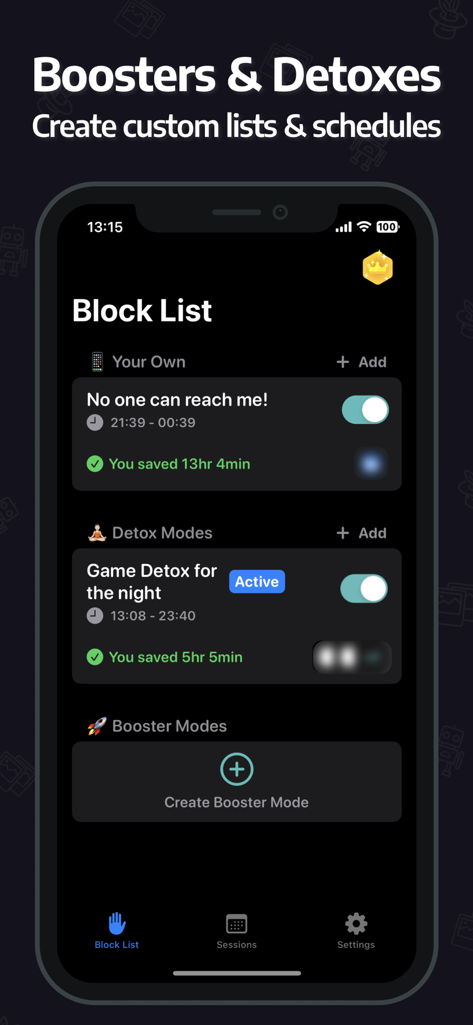 Boosty uses Screen Time API to block apps. Don't worry, we do not collect or share any of your data.