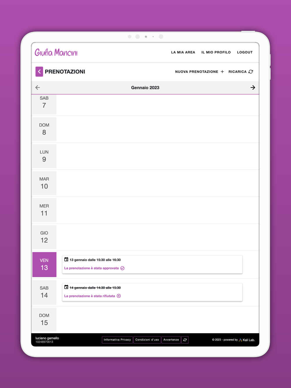 Sulla mia app abbiamo inoltre la possibilità di chattare per rimanere sempre in stretto contatto e condividere dubbi, successi e foto e un’area prenotazioni che ti permette di programmare velocemente le sedute di allenamento insieme.