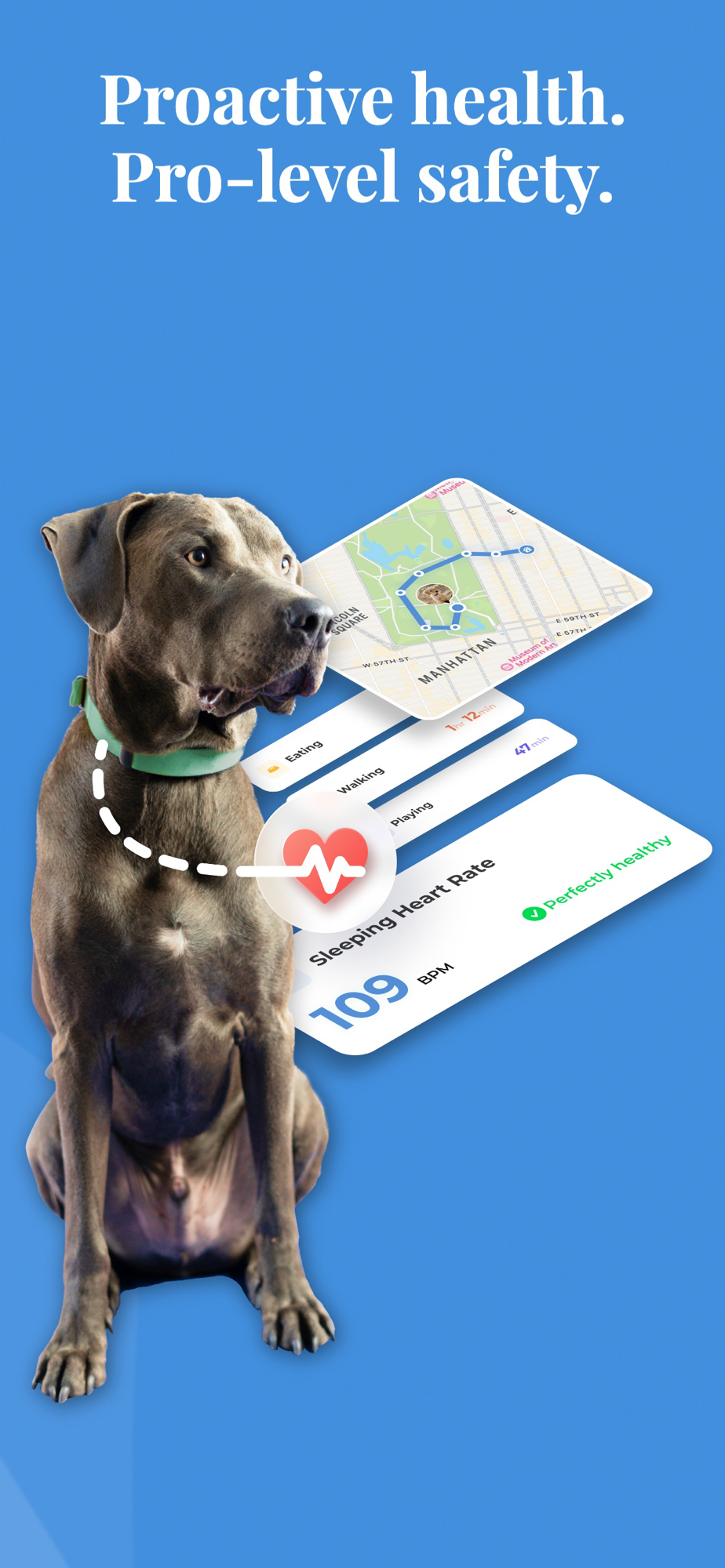 Smart Dog Collar is the 1st biometric collar for dogs with heart health monitoring and GPS tracking. Equip your dog with the collar and download the app to track all their data!