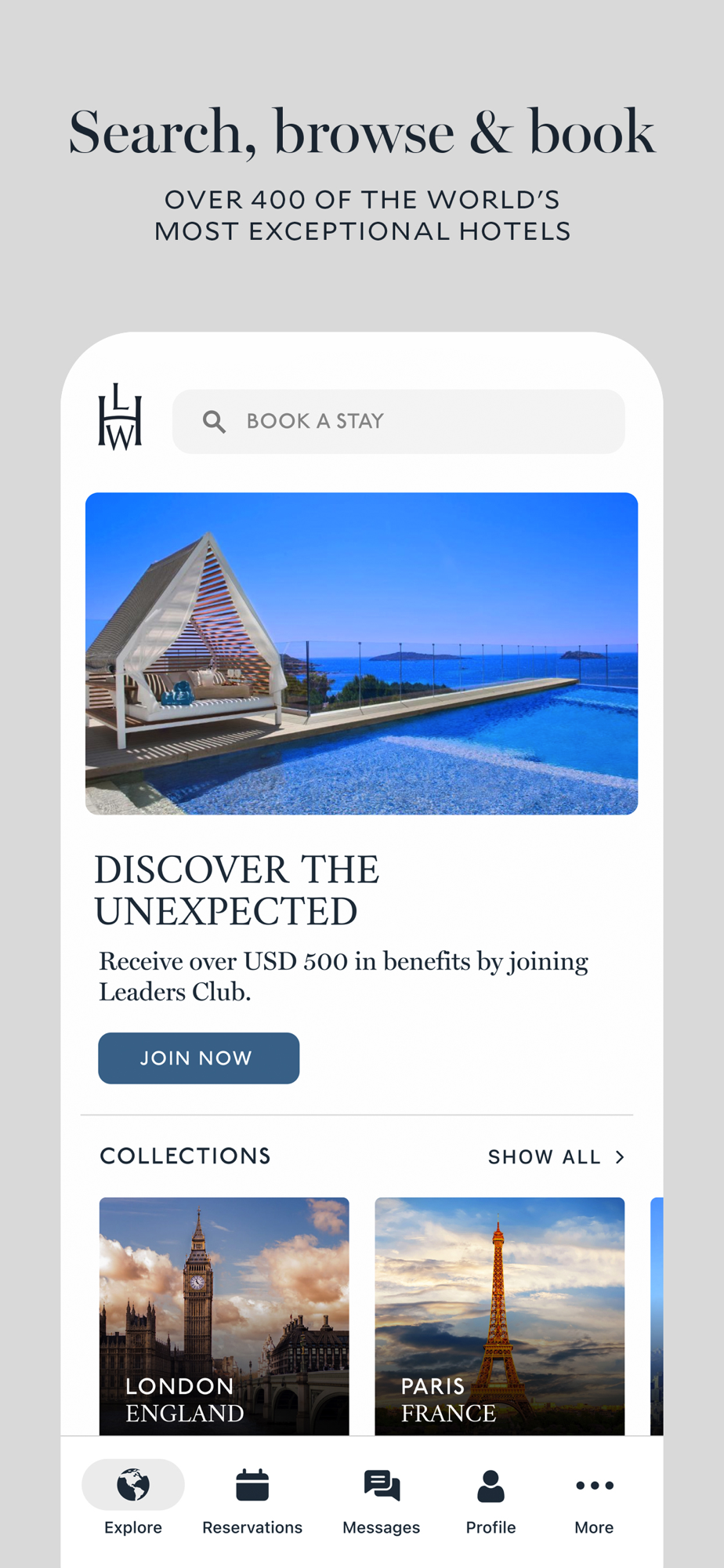 Unlock our curated collection of more than 400+ hotels in over 80 global destinations around the world with the Leading Hotels Mobile App.