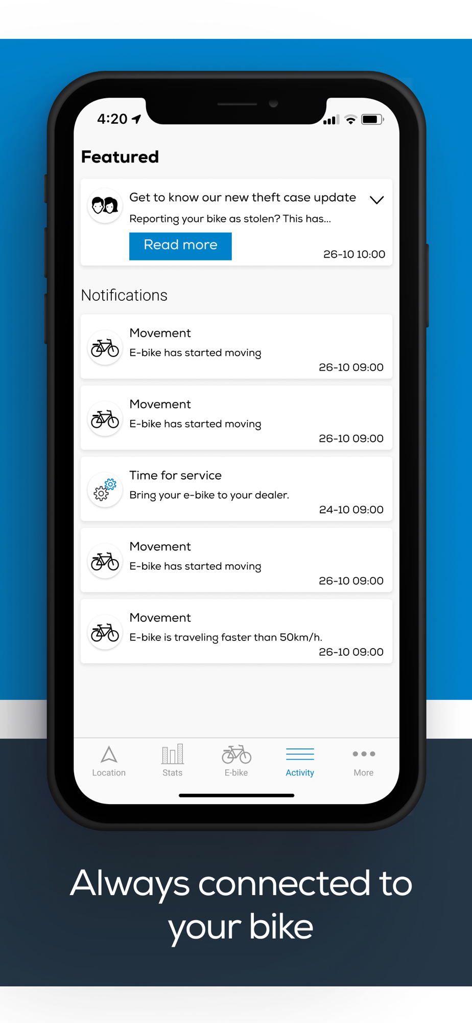 Would you like to know when someone is handling your bike without your knowledge ? A motion sensor integrated in the bikes allows you to be notified, if you wish, as soon as your parked bike is handled by someone else.