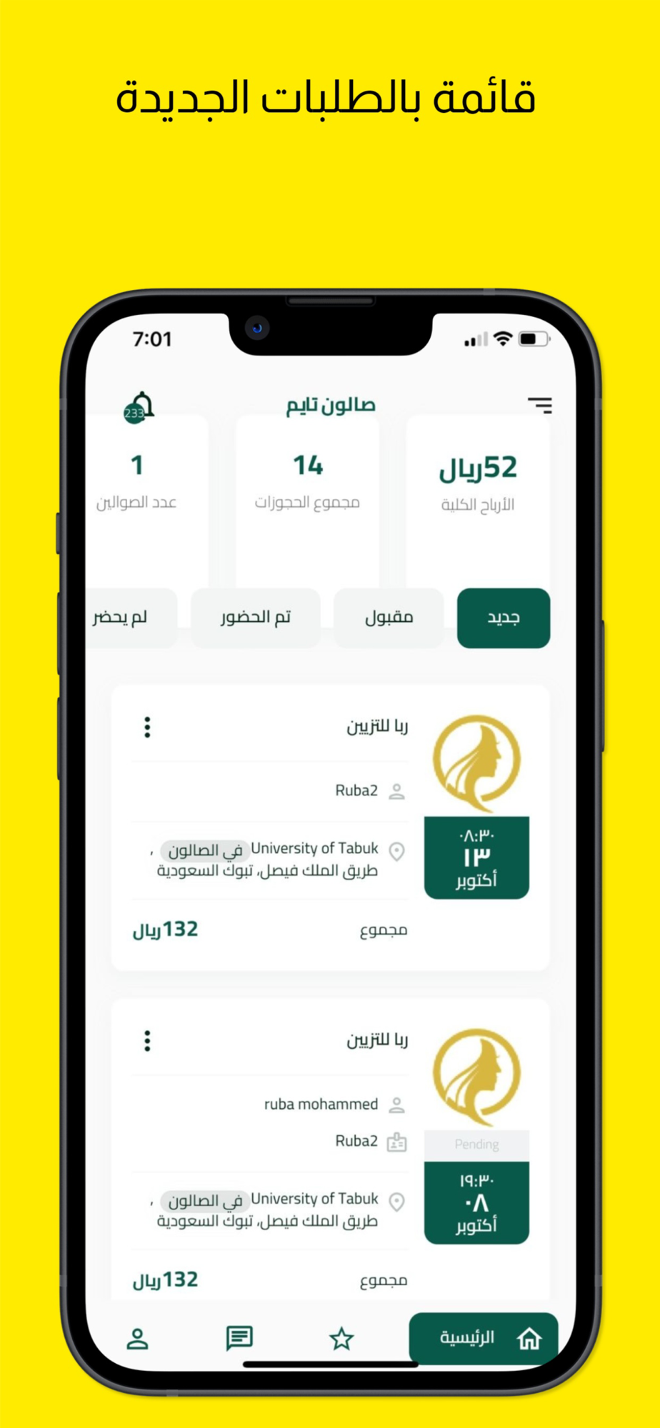 • العنوان: الباقة الأولى : تفعيل الظهور في تطبيق الزبائن صالون تايم لمدة ستة اشهر