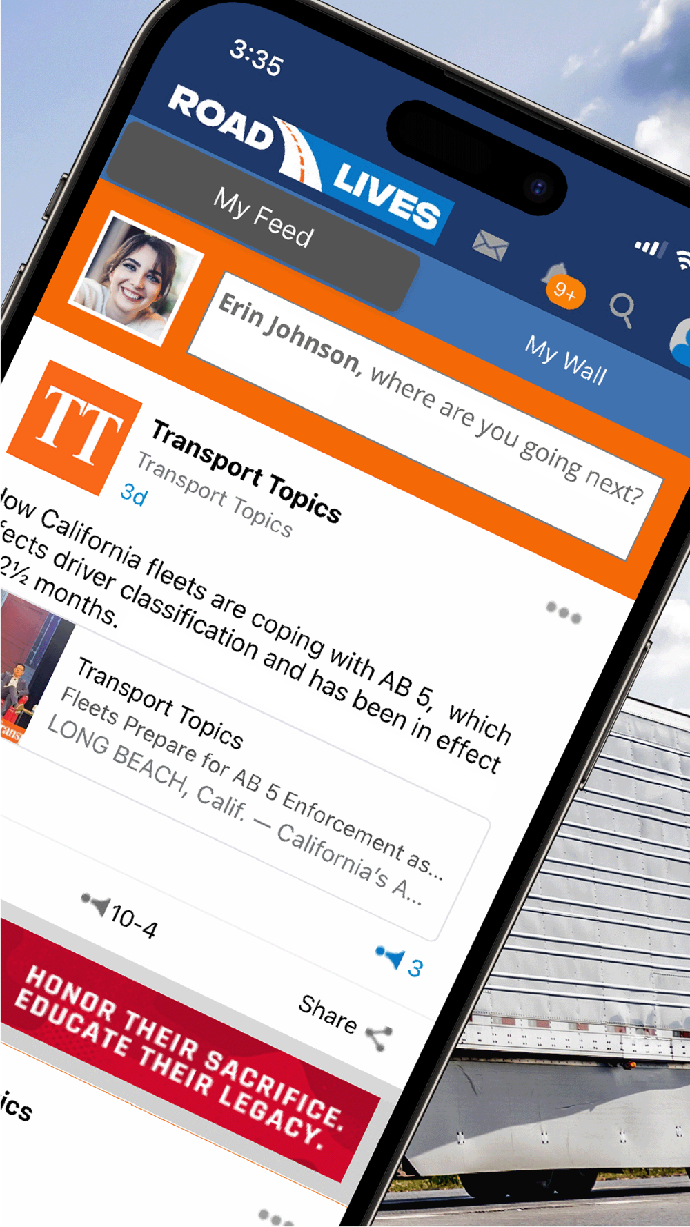 Road Lives offers a wide range of services in one platform. Use our Social Media to follow businesses, industry leaders and friends. Post and book unlimited Loads. Search our National breakdown directory to find the best service to help you get back on the road fast. Search truck stops across the country to find locations, amenities, food and even fuel prices. In the market for new equipment? Search new and used trucks and trailers or post items for sale on our Marketplace. Search our Job Board for your next career opportunity. And use our built in Messaging tool to communicate with friends.