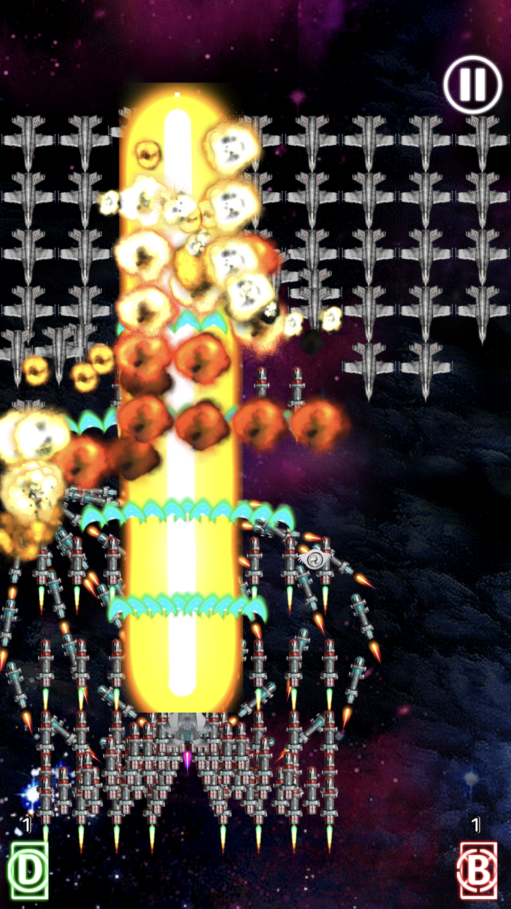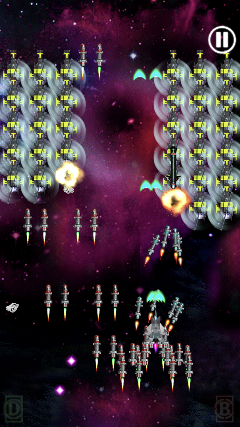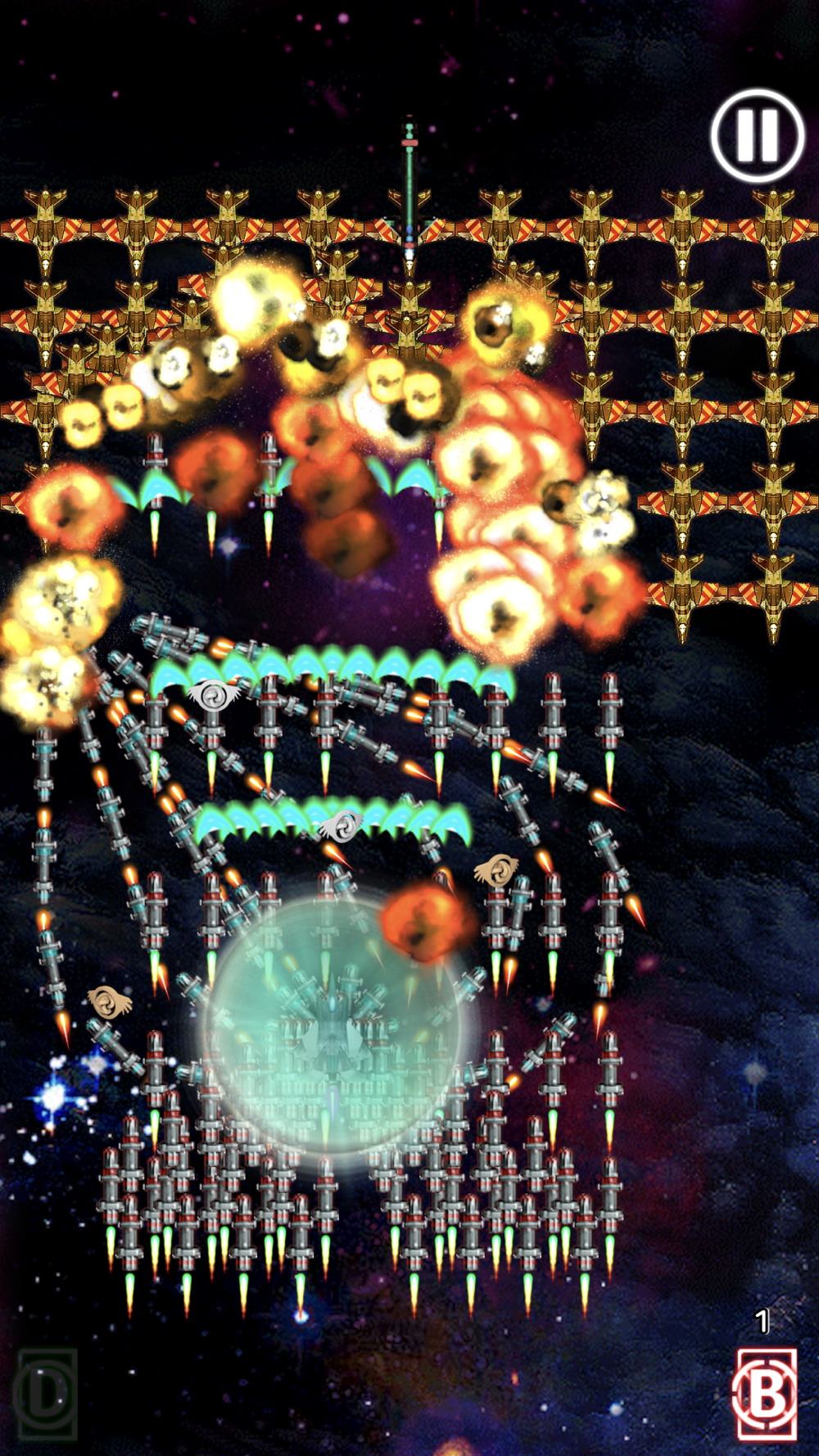 - Attack with dozens of spaceships, various guns, lasers and missiles