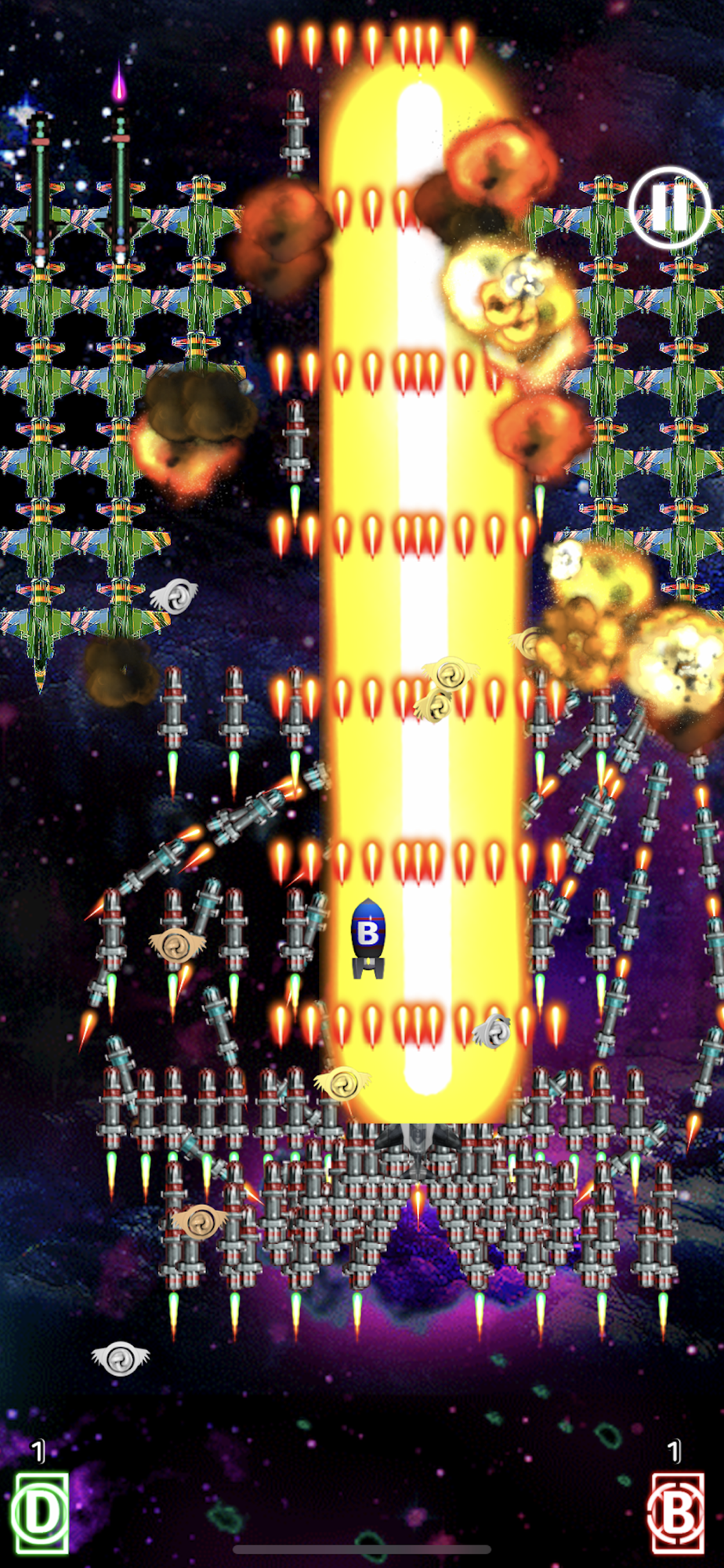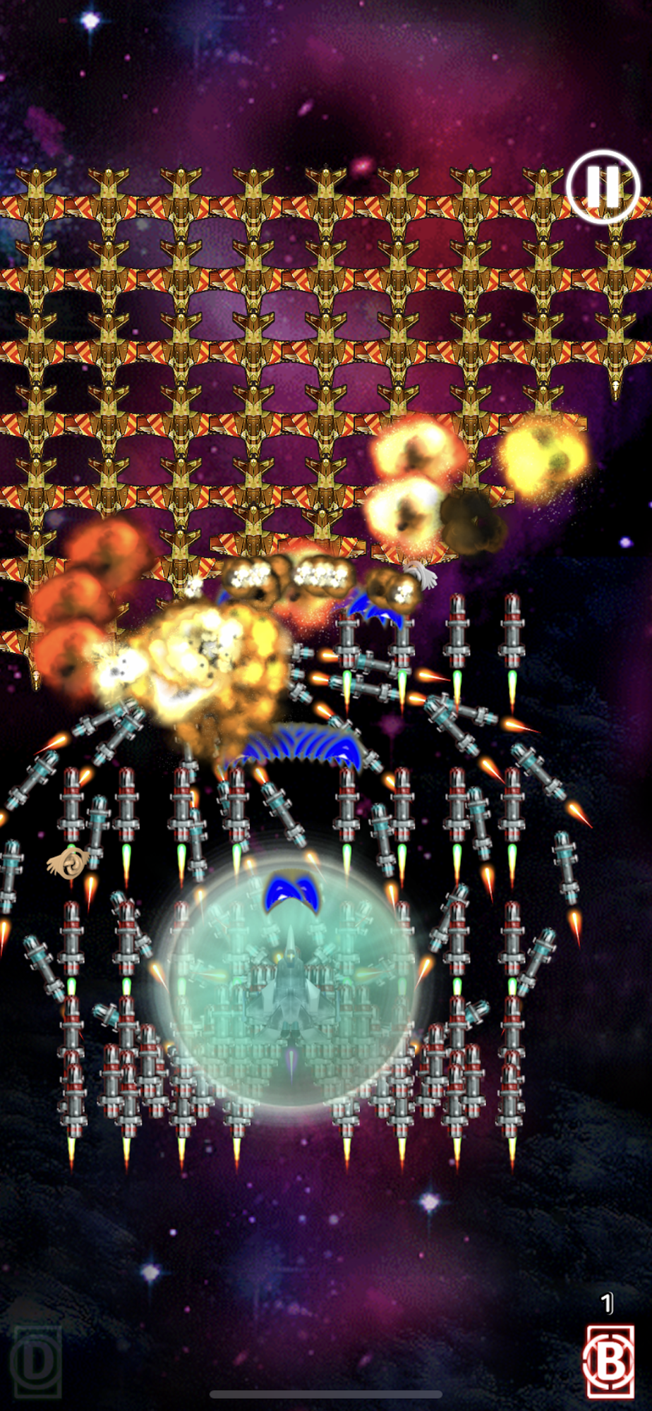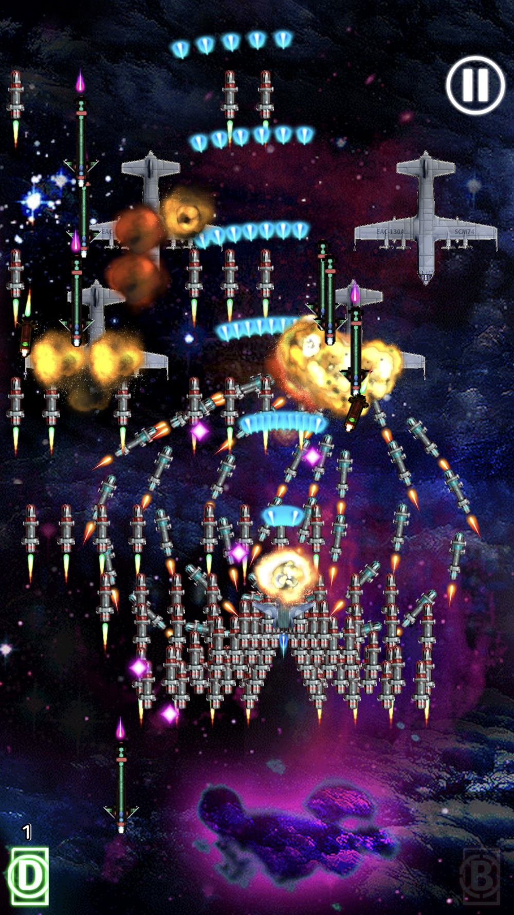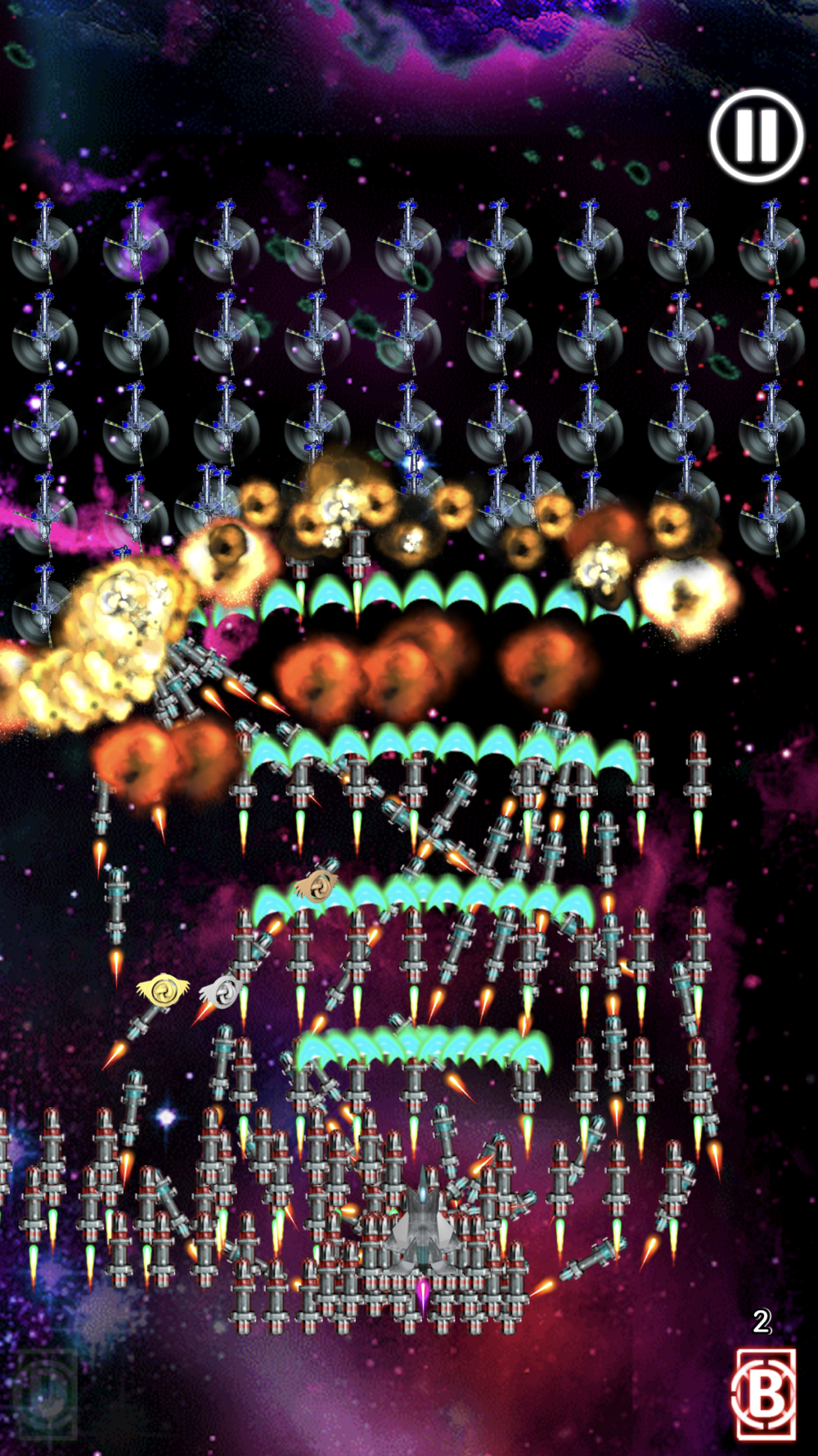 - Attack with dozens of spaceships, various guns, lasers and missiles
