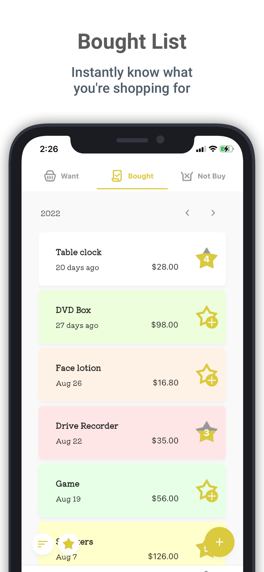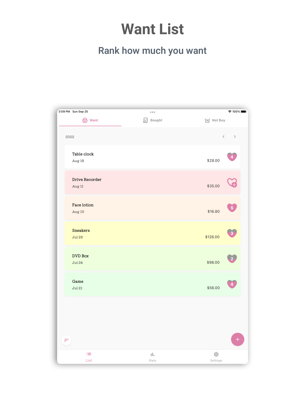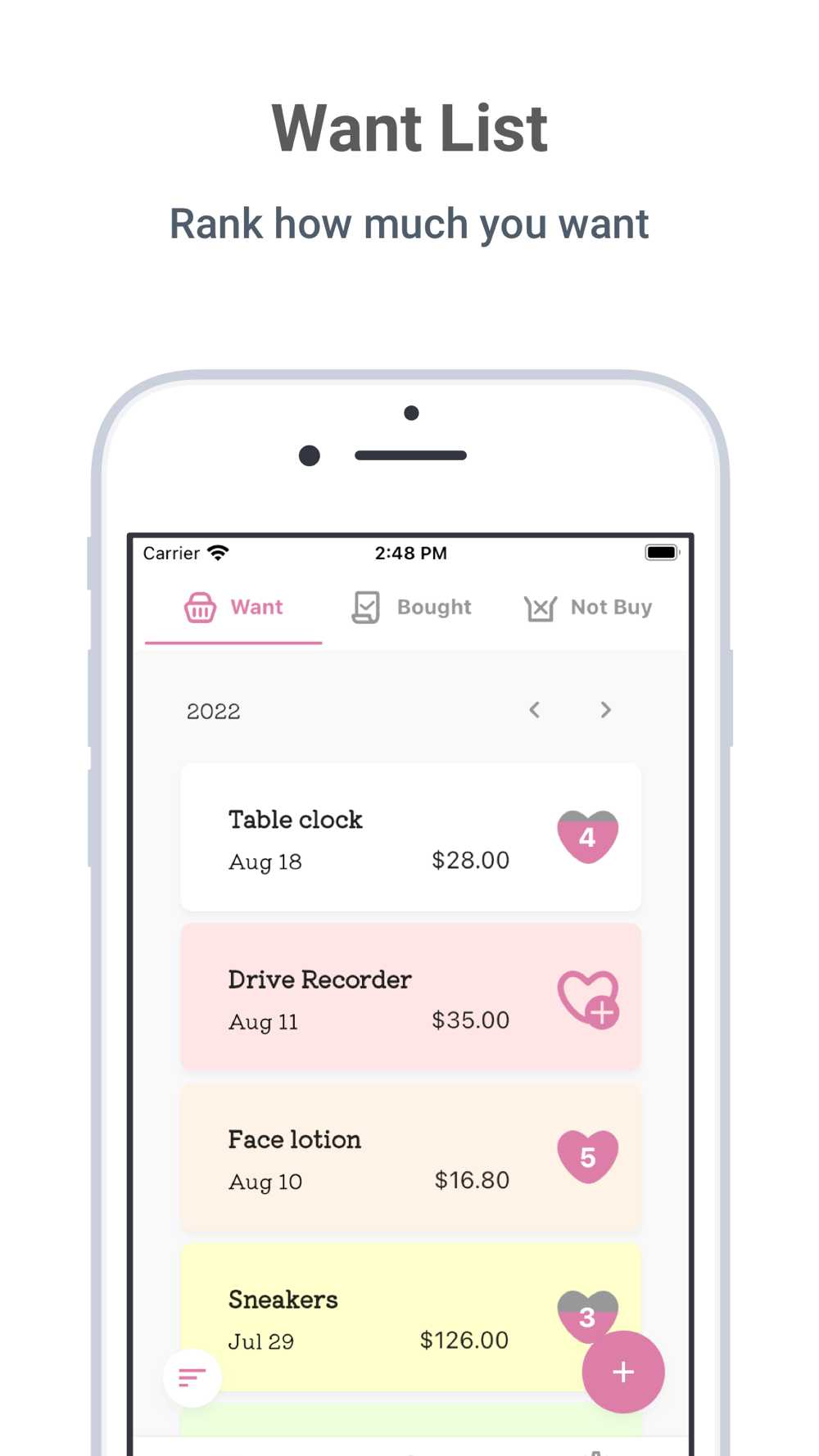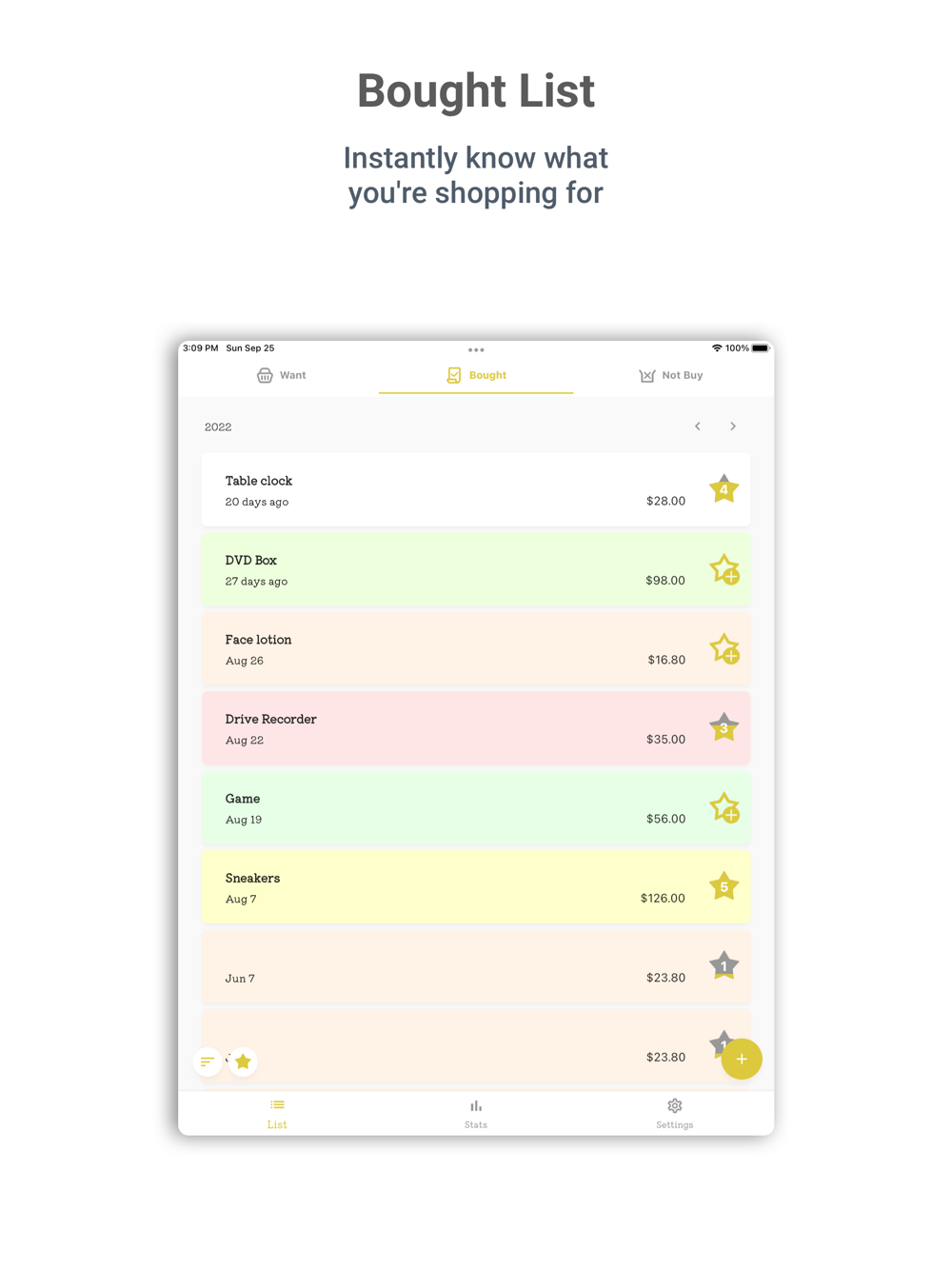 When the list continues to be substantial to some extent, it will be useful to review the evaluation of the purchased items and decide whether to really buy the items that you want to buy in the future.