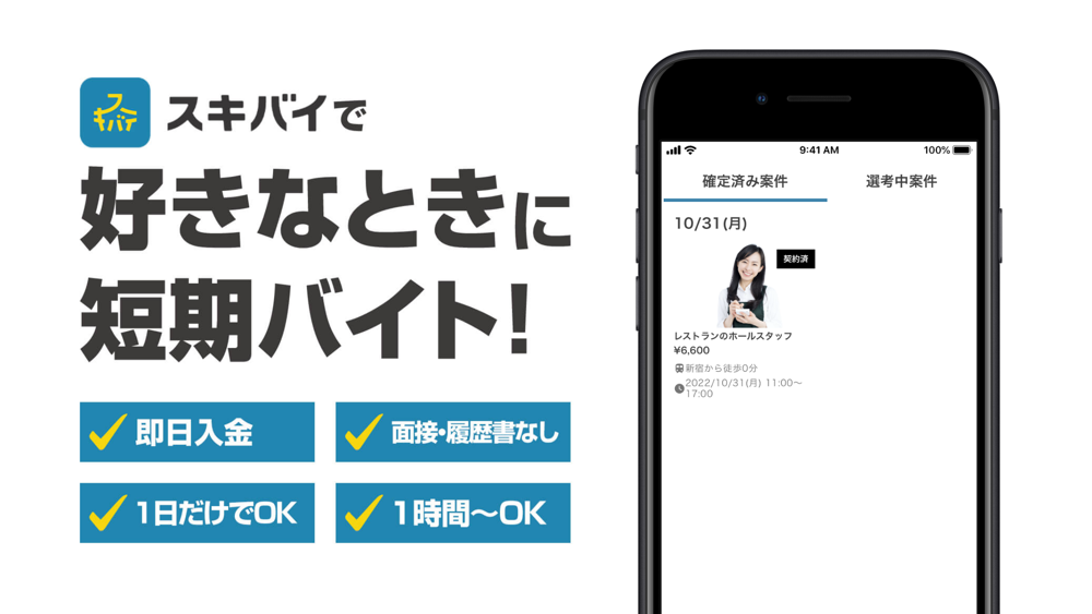 スキバイは履歴書や面接なしで単発アルバイトが出来ます。