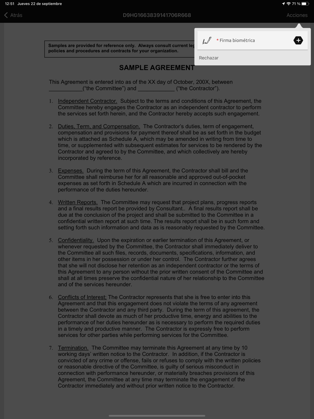 Aplicación para la firma de contratos de Lexus Spain.