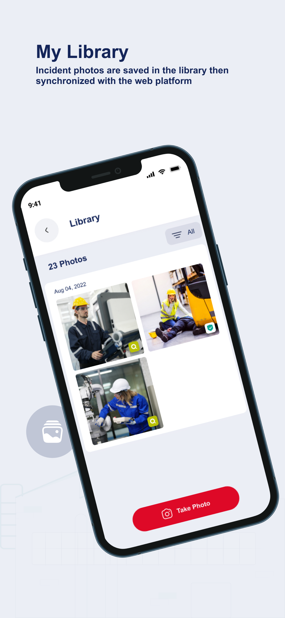 - The photo will be automatically sent to the photo library of the Carto HES web application and the user can use it when reporting an event / project / audit via the web application.
