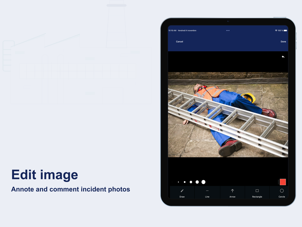 This application will be used to take photos in order to document events, projects or audits in Carto HES web platform. The user will be able to: