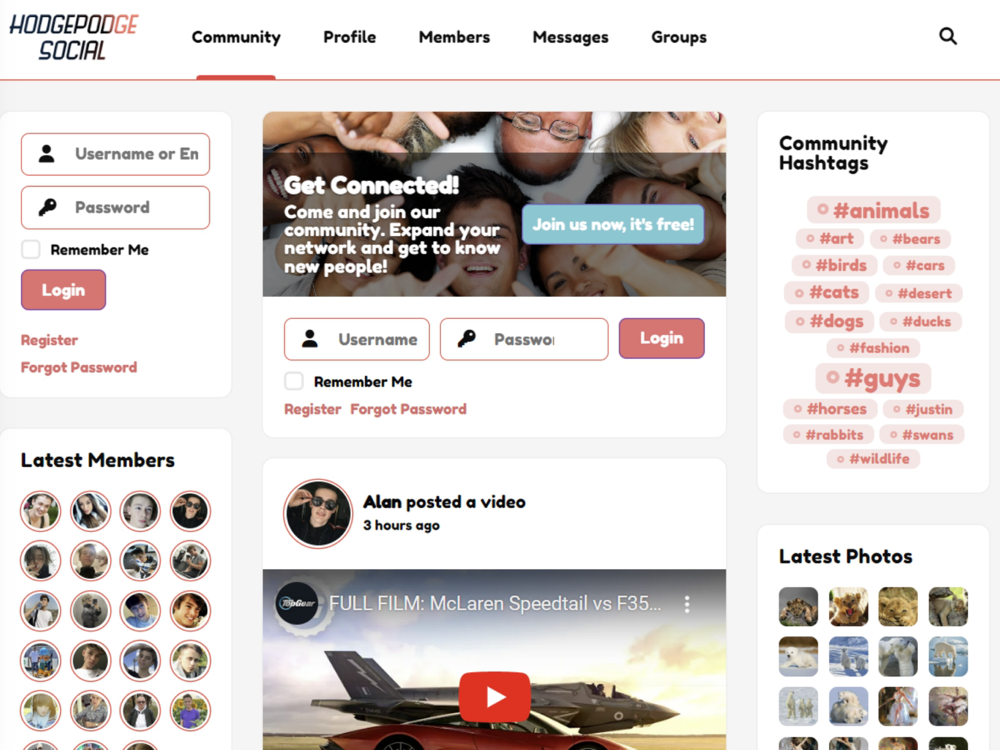 Hodgepodge social community site is a social site made simple it easy to use you can share your post with friends or members all have private settings on active wall all profile pages have private settings you can also message your friends and so much more.