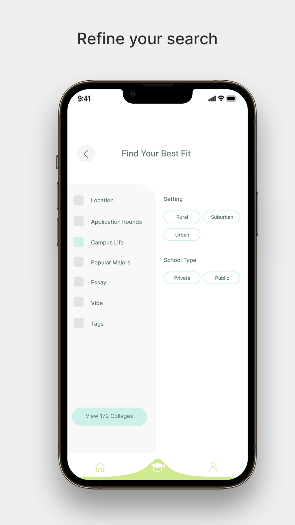 - College Search: Browse top colleges through filters like location, application rounds, majors offered, and essay requirements. Want to find an entrepreneurial college? Or an outdoorsy one? Now discover your best fit with filters like “vibes”! Find in-depth college-specific statistics on rankings, acceptance rates, admission requirements, and financial aid.