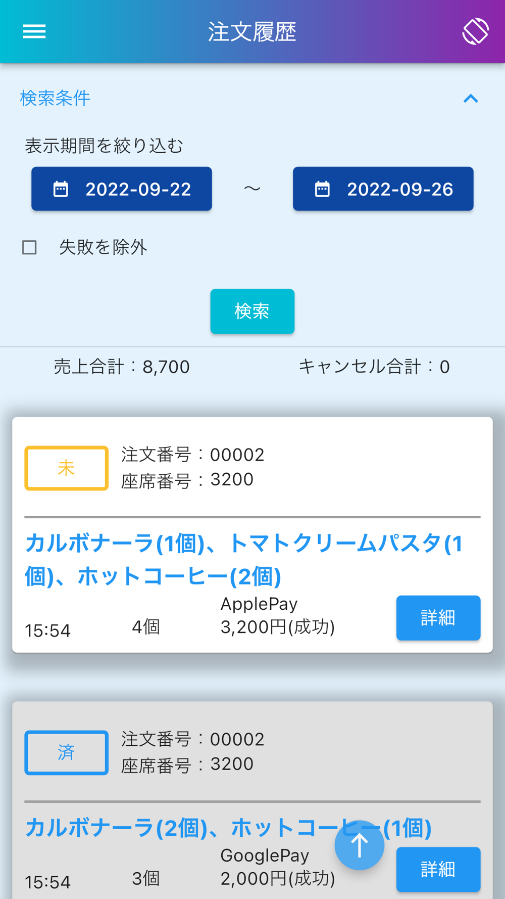 検索機能により、必要な期間の決済データが簡単に確認できます。