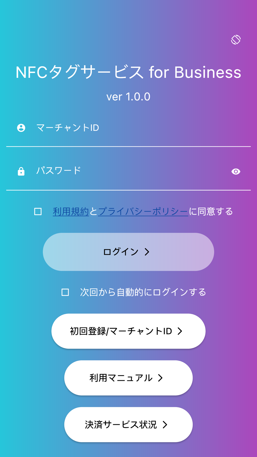 2.サービス申し込み後に届いた「NFCタグサービス登録手続き完了のご案内」に記載のログインID/PASSでログイン