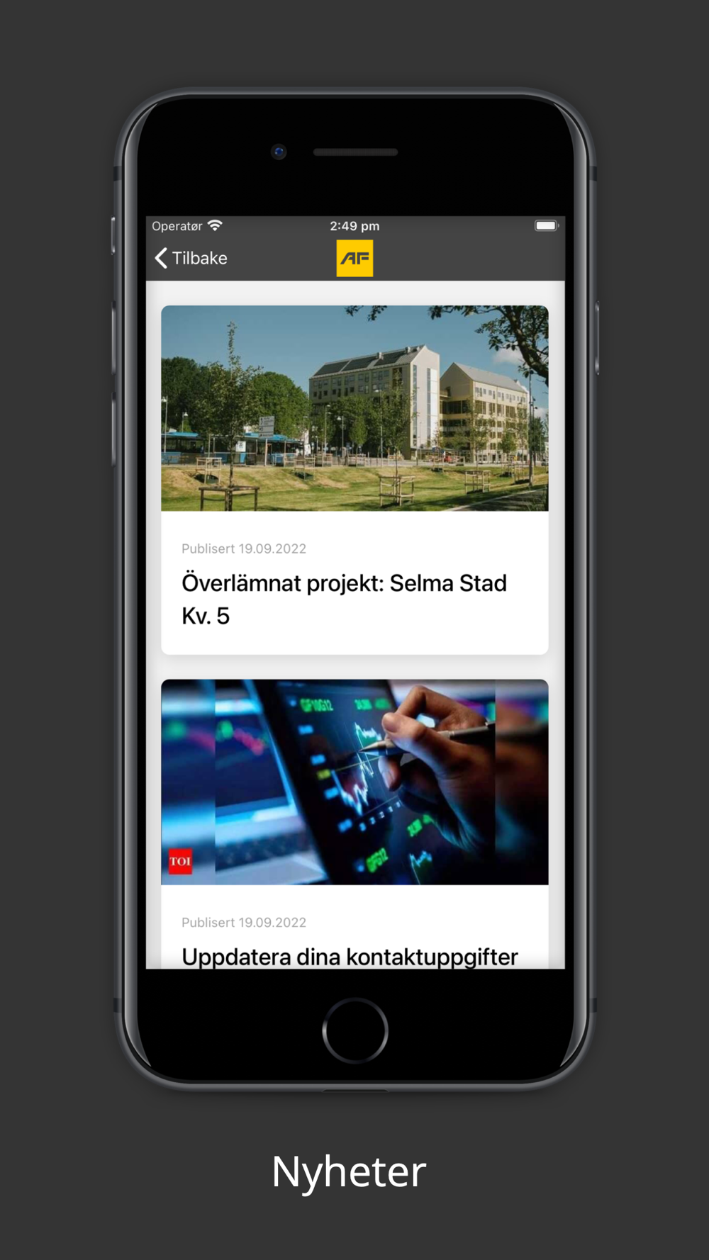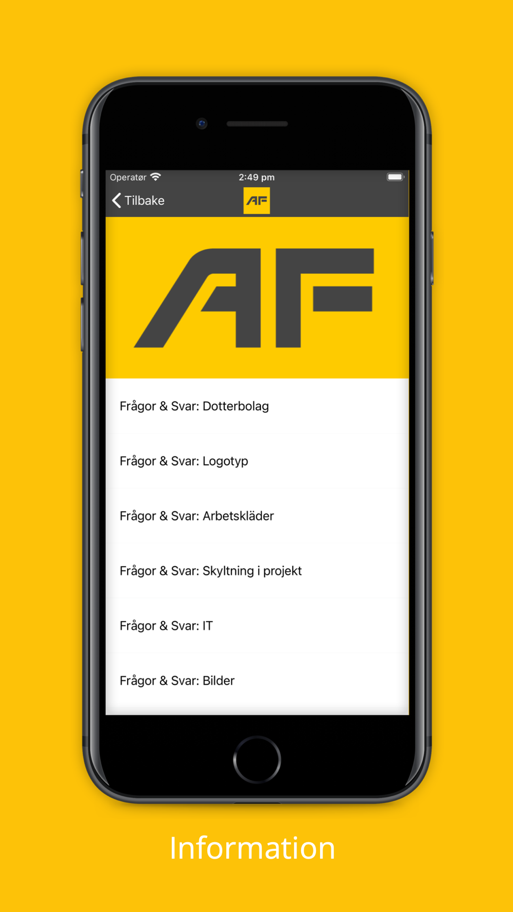 Med denna app kan du hålla dig uppdaterad med nyheter från AF, få en överblick över medarbetarinformation och få tillgång till användbara och viktiga HMS- och kvalitetsdokument.