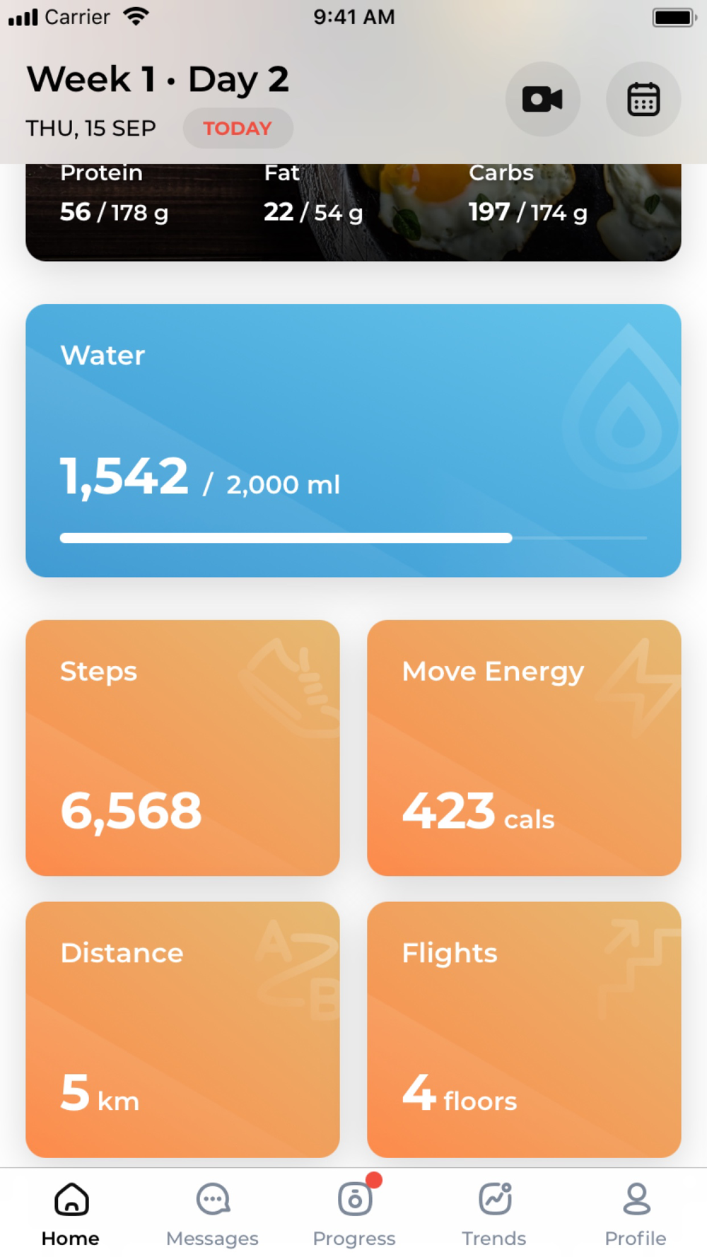 The app integrates with Apple Health to show your daily activity - distance, steps, active energy, and flights to help you better achieve your goals.