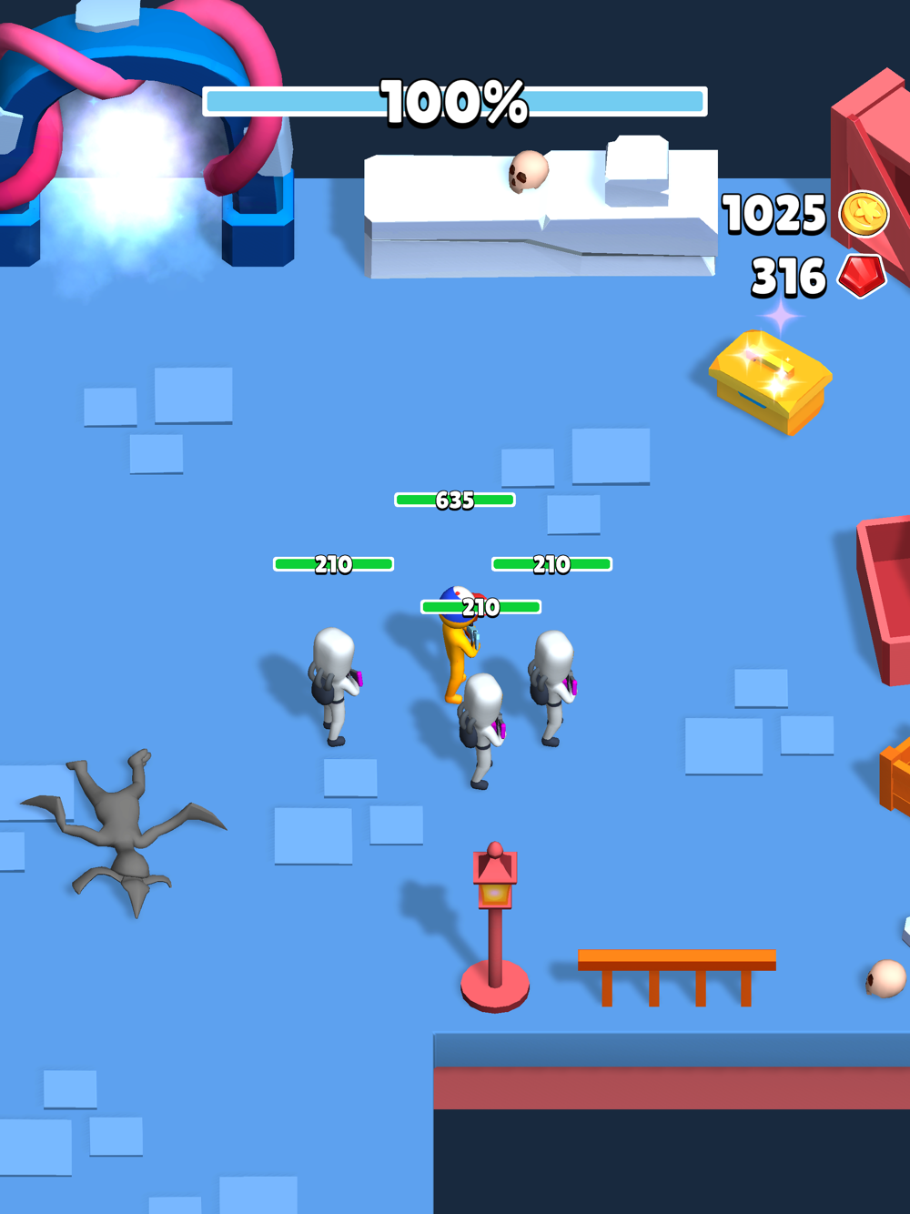 In the dungeons you will find hidden rewards, money and chests. Explore locations, defeat bosses and upgrade your base.