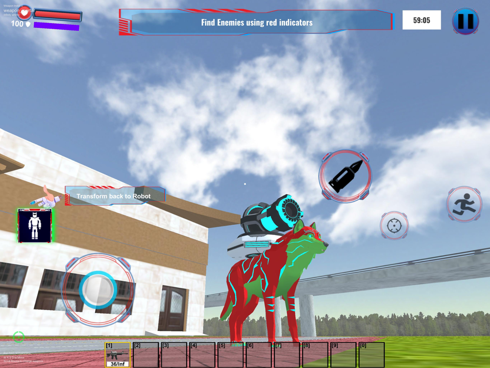 Get ready to enjoy an amazing action packed wolf robot car transform game for all the lovers of futuristic fight. Join and participate as wild wolf in rescue mission of grand city where your enemies are planning to cause destruction by shooting around furiously. They can fly and have superpowers to transmute into different flying objects to cause danger. You the only hope for people of their survival in wolf robot car transforming game.