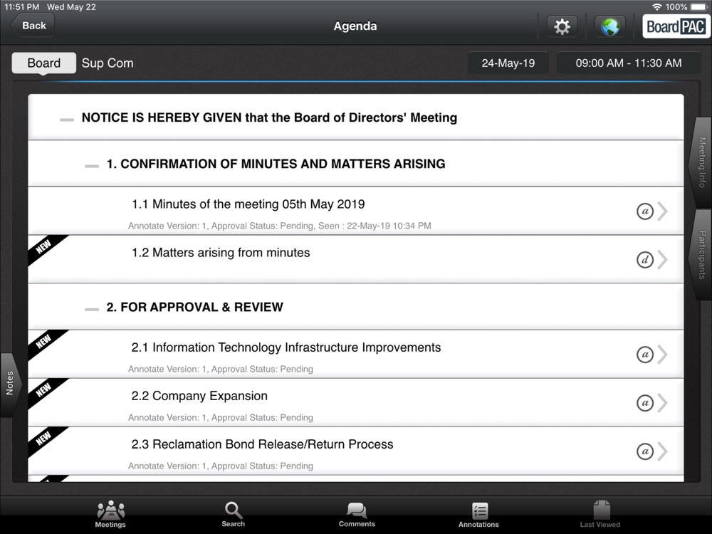 BoardPAC is an effective way for Board Directors to access the Board & Committee Papers and supplementary information directly on their iPad device. This solution enables efficient and secure access to the company Corporate Board Papers. The platform facilitates quick decision making through a collaborative approach. All comments and feedbacks are available for view by the recipient stakeholders.