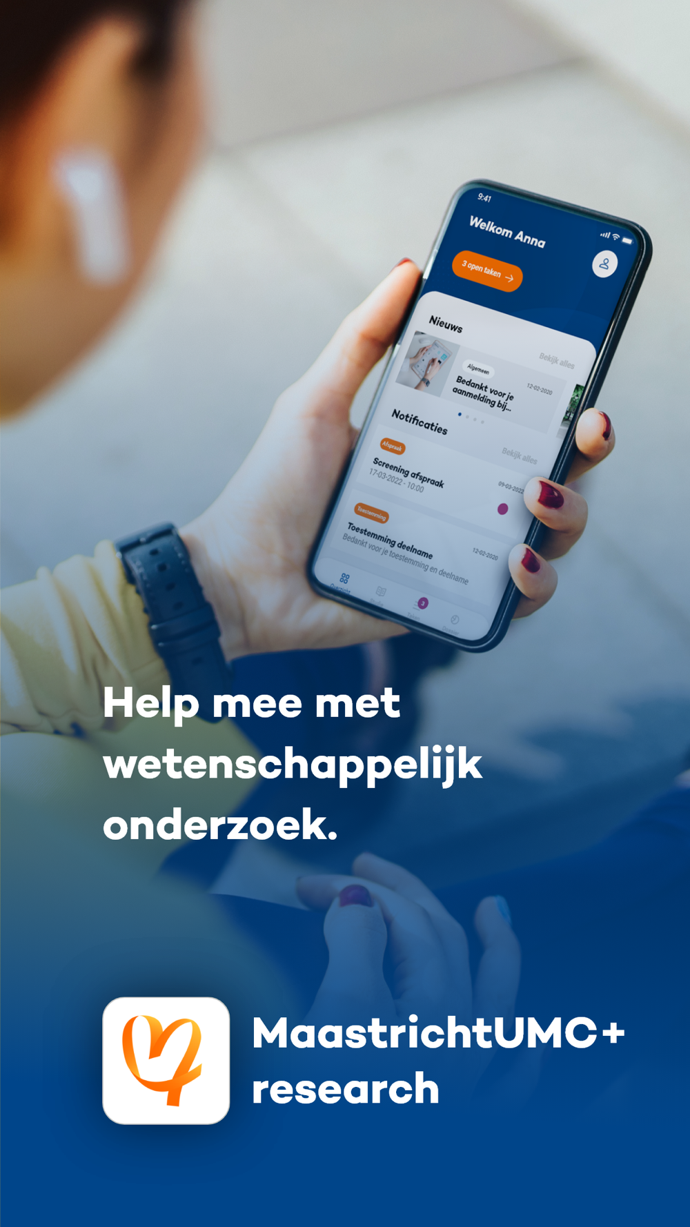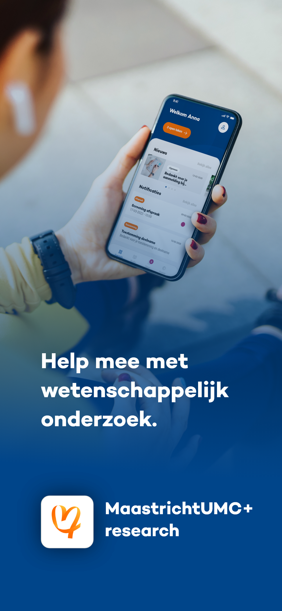 De Maastricht UMC Research app wordt beheerd door het Maastricht UMC+. Wij gebruiken de App bij medisch-wetenschappelijke studie’s die door onder leiding van het Maastricht UMC+ worden uitgevoerd. Als u een bijdrage wil leveren aan de het wetenschappelijk onderzoek van het Maastricht UMC+ door als proefpersoon deel te nemen kunt u met deze app.