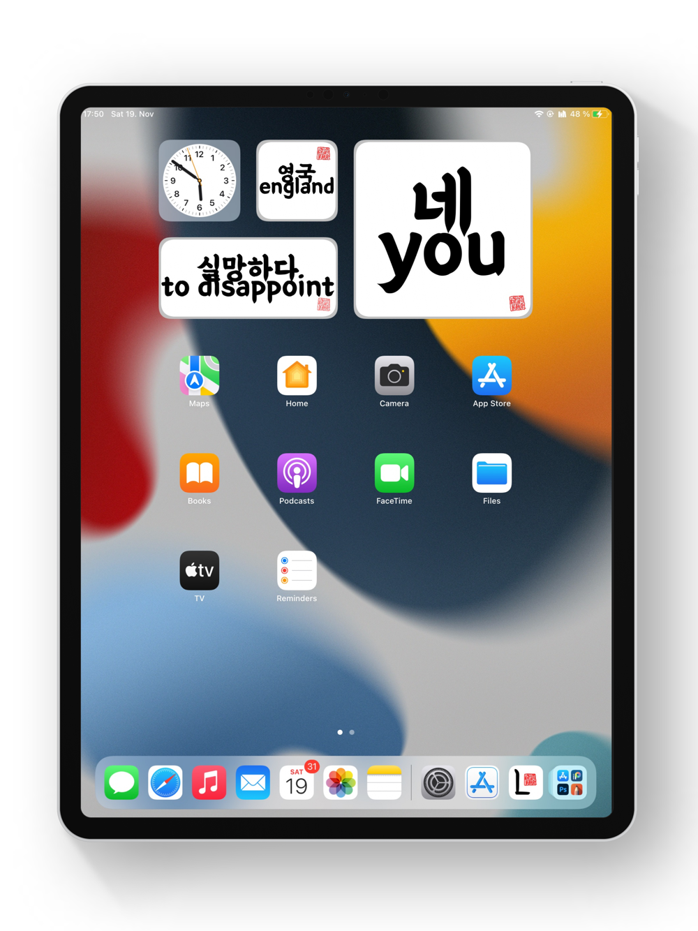The widget app shows you, depending on your preferences, the most common Korean words and their translation. The word is automatically changed after 4 hours.