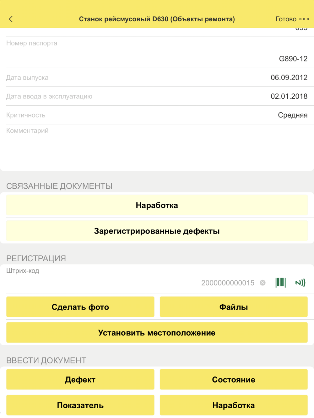 • Идентификация объектов ремонта по штрих-коду, QR-коду, NFC-метке.
