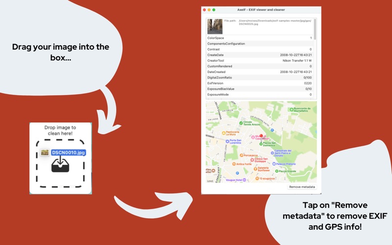 - Tapping on "Remove metadata" will remove the image's EXIF and GPS information in-place