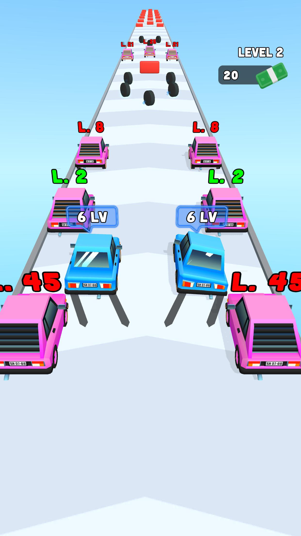 Hold n release to dodge obstacles and cars! Level up and beat them all!