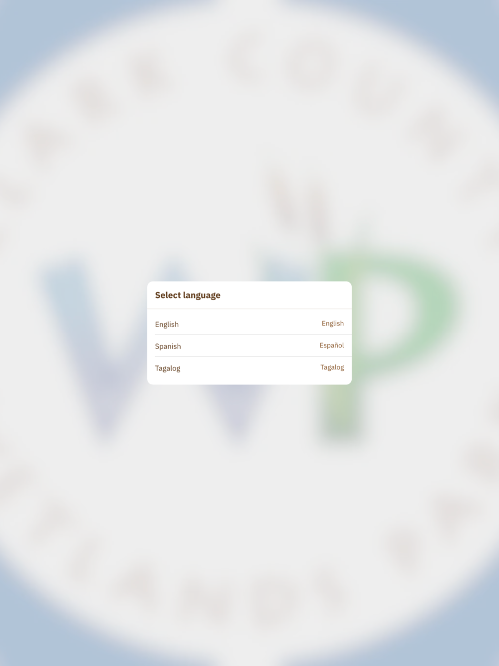 Tours and Park content are available in English, Spanish, and Tagalog.