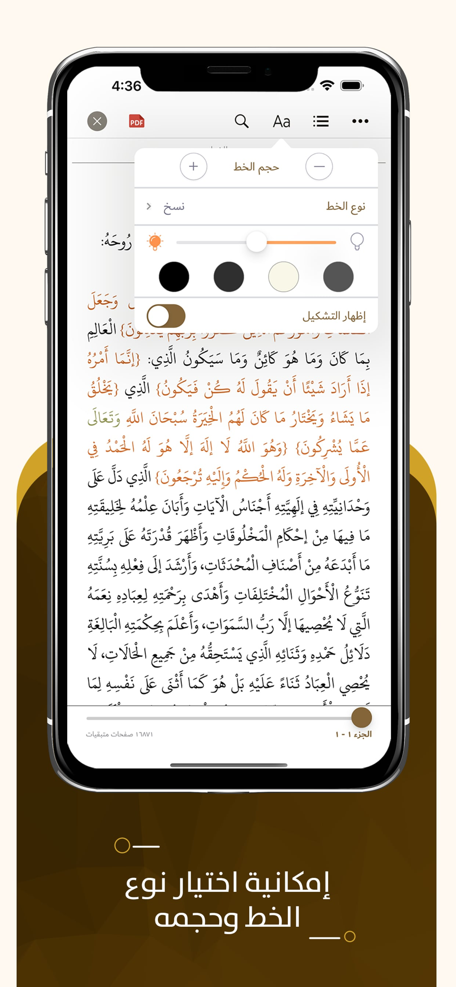 • إمكانيات تساعد على القراءة مثل اختيار نوع الخط وحجمه