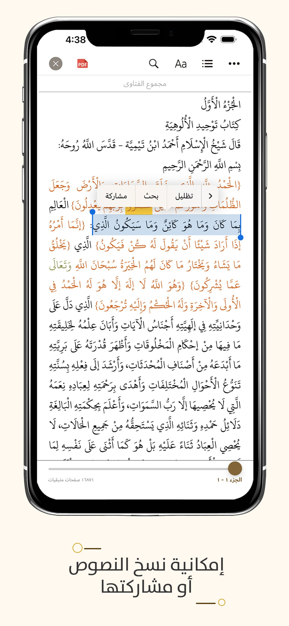 • إمكانية نسخ النصوص أو مشاركتها على برامج وشبكات التواصل الاجتماعي