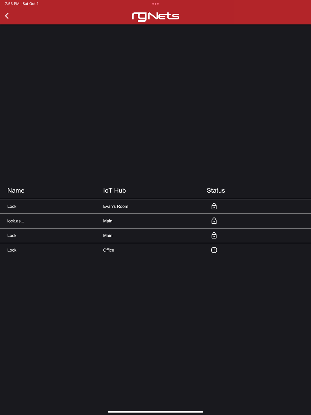 This app is a simplified interface for viewing IoT-enabled locks and thermostats within the RG Nets revenue eXtraction gateway (rXg). The app uses the rXg RESTful API. The rXg must be deployed on a publicly accessible IP, associated with a public DNS record and configured with a valid SSL certificate for this app to function. The api_key must be associated with an account authorized to write to the Identities views.