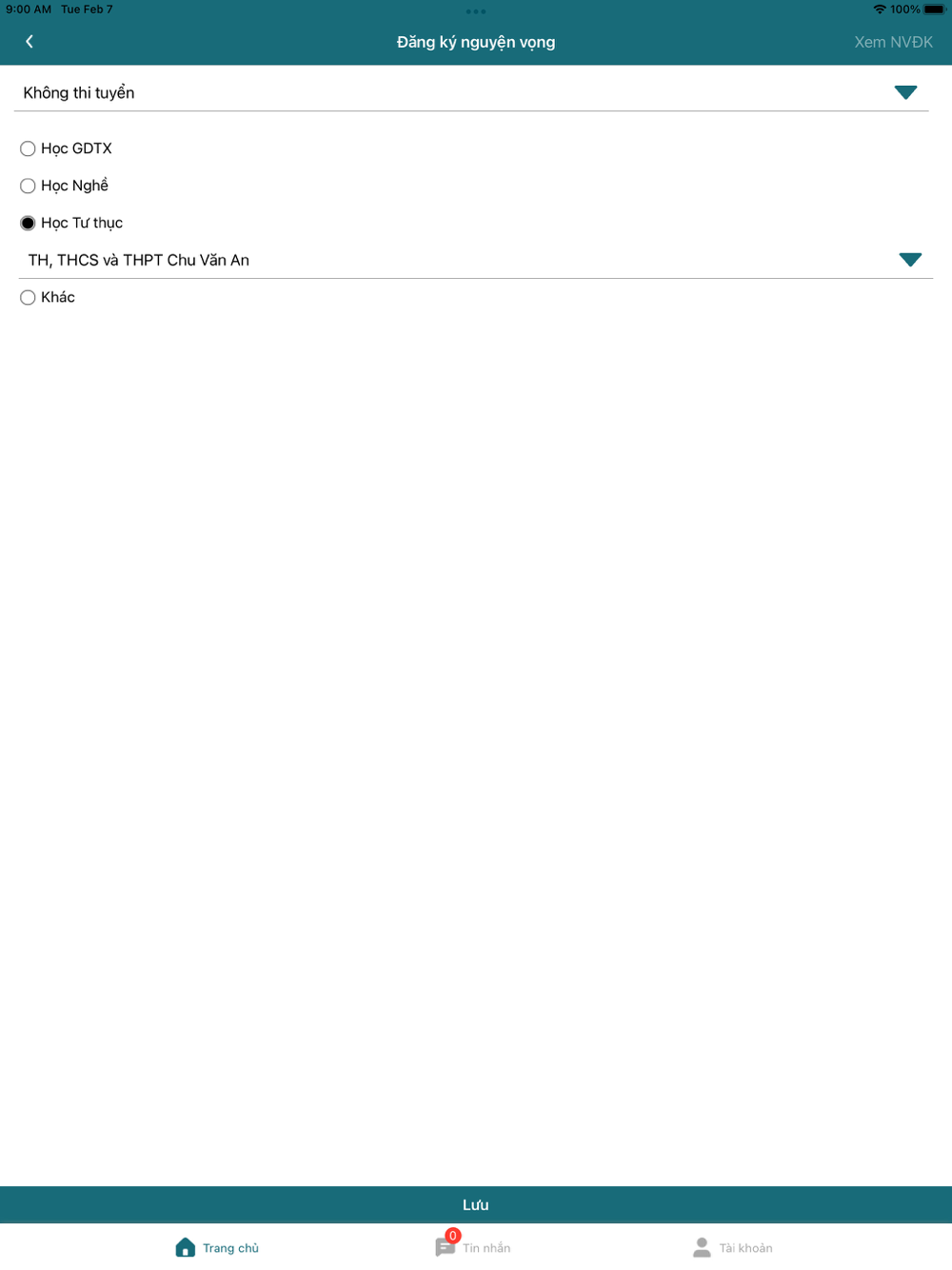- Xem tin nhắn thông báo về kỳ thi.