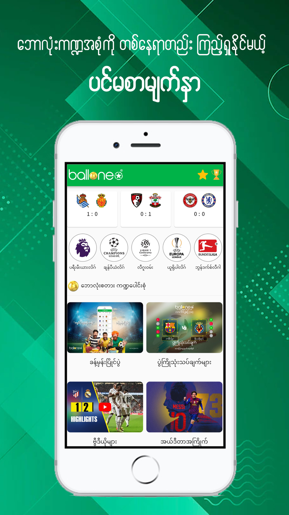 The Ballone Star @ Football Star is the mobile football app in Myanmar. Ballone Star is the best Football App for up to date with all the latest football news, live scores, results, transfers and more from your favorite team and all other clubs around the world.