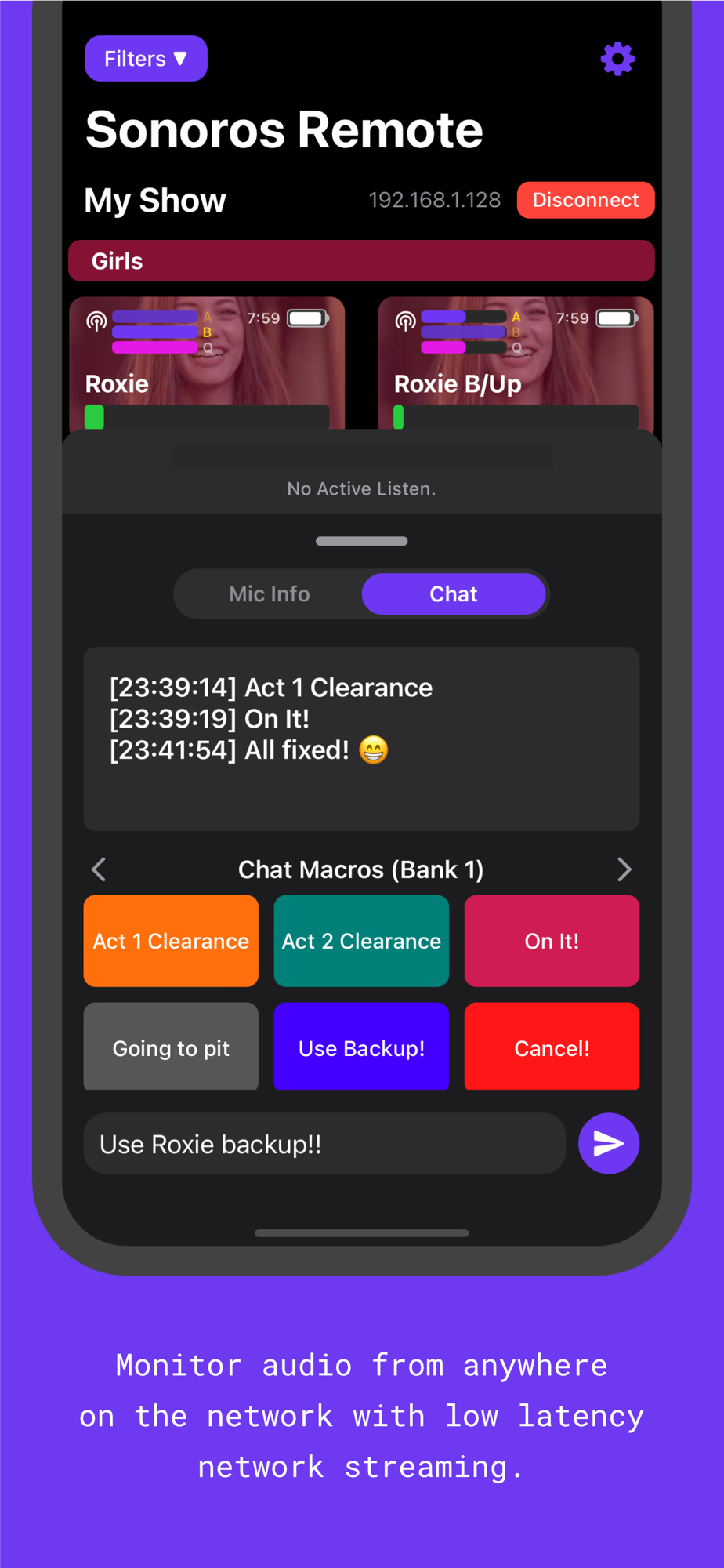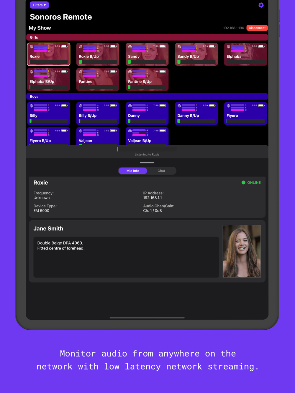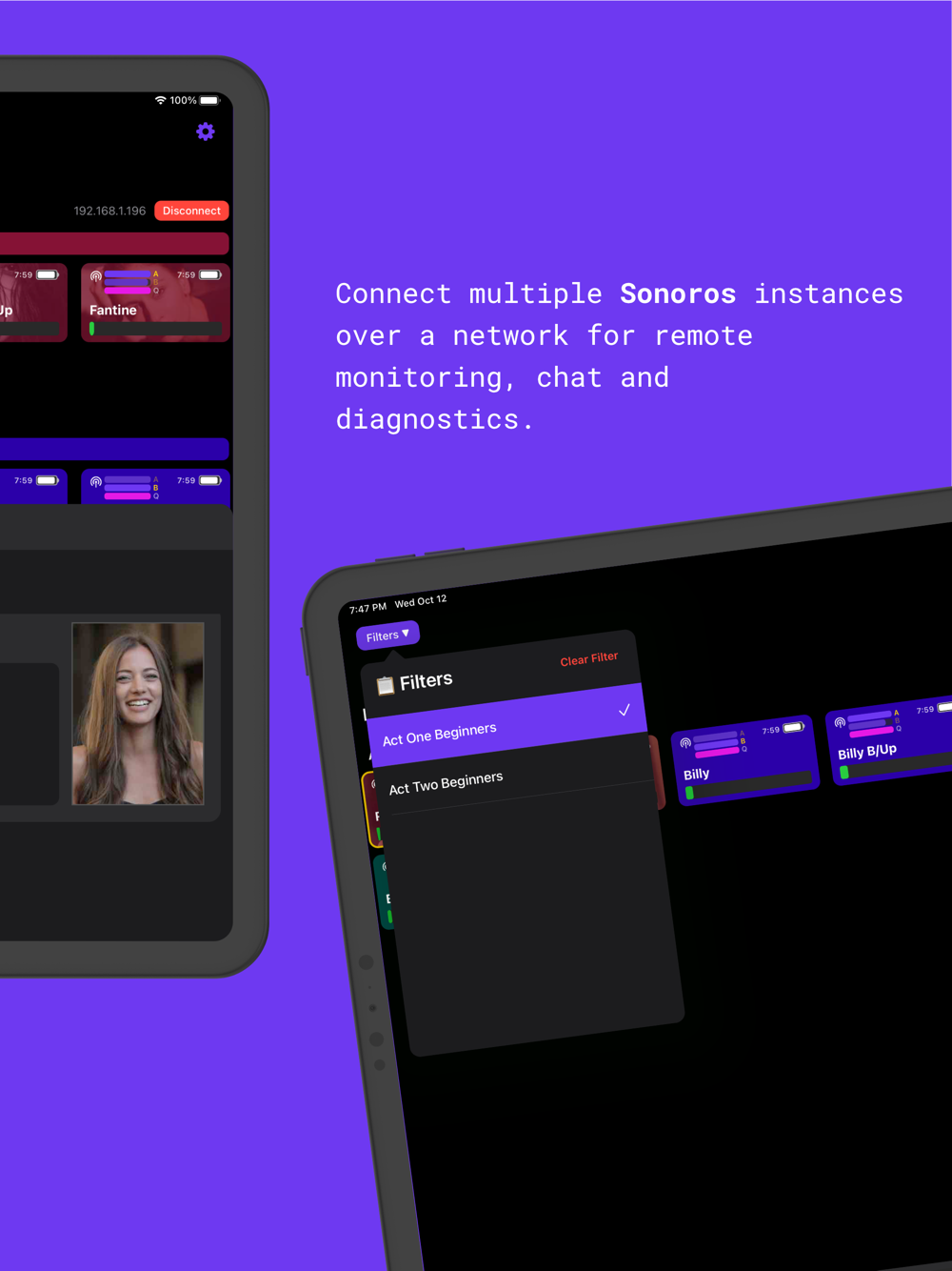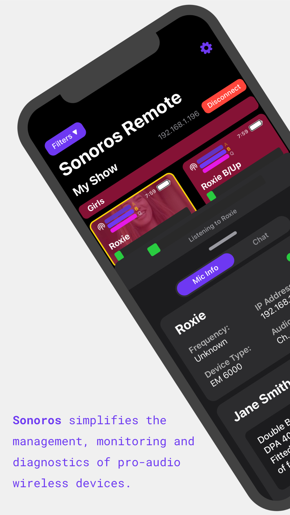 • Sonoros for iOS puts all your show audio streams in your pocket, wherever you are in a venue.