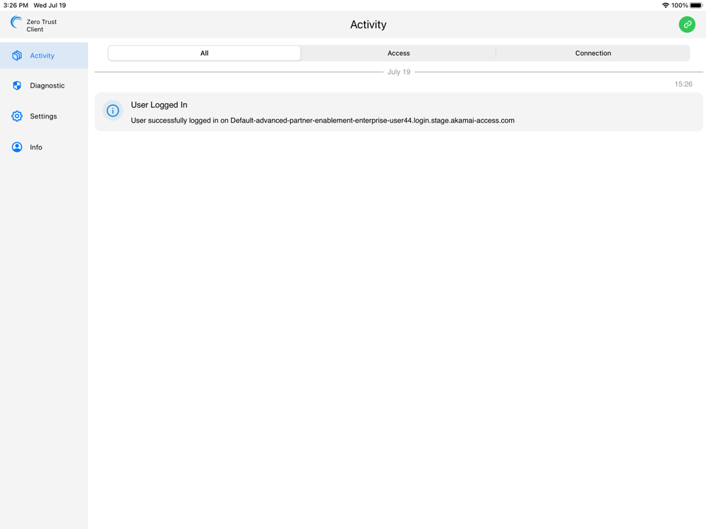 Akamai Zero Trust Client extends the Access solution to mobile devices and lets you securely access your enterprise applications and resources.