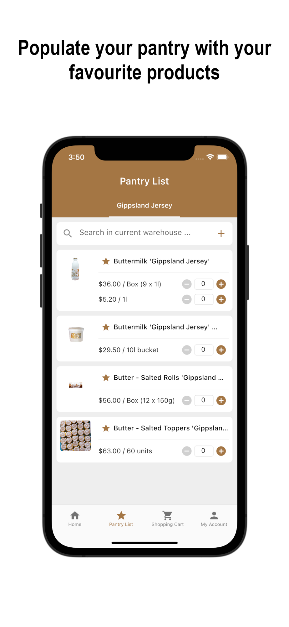 Customise your pantry lists with your favourite products.