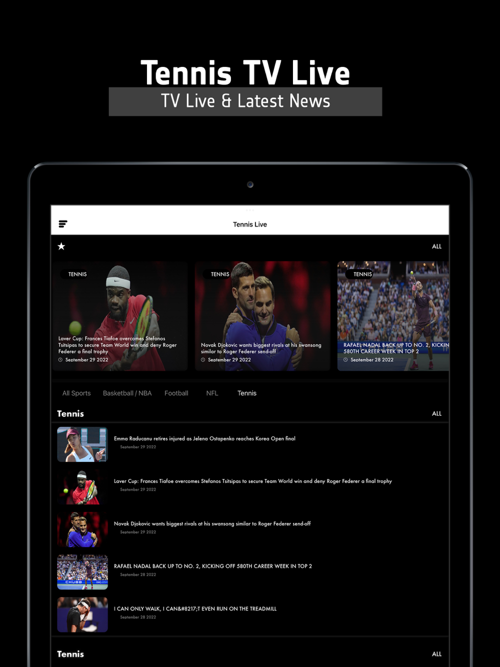 Stream live tennis on your favourite device from every ATP Tour tournament, as well as full match replays, classic matches, highlights and live scores as they update in real-time.