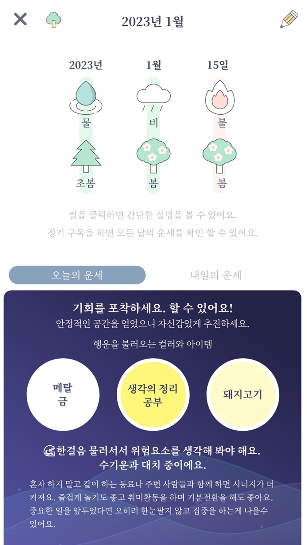 (오늘의 운세에서는 오늘 유리한 컬러나 음식, 아이템 등을 확인 할 수 있어요)