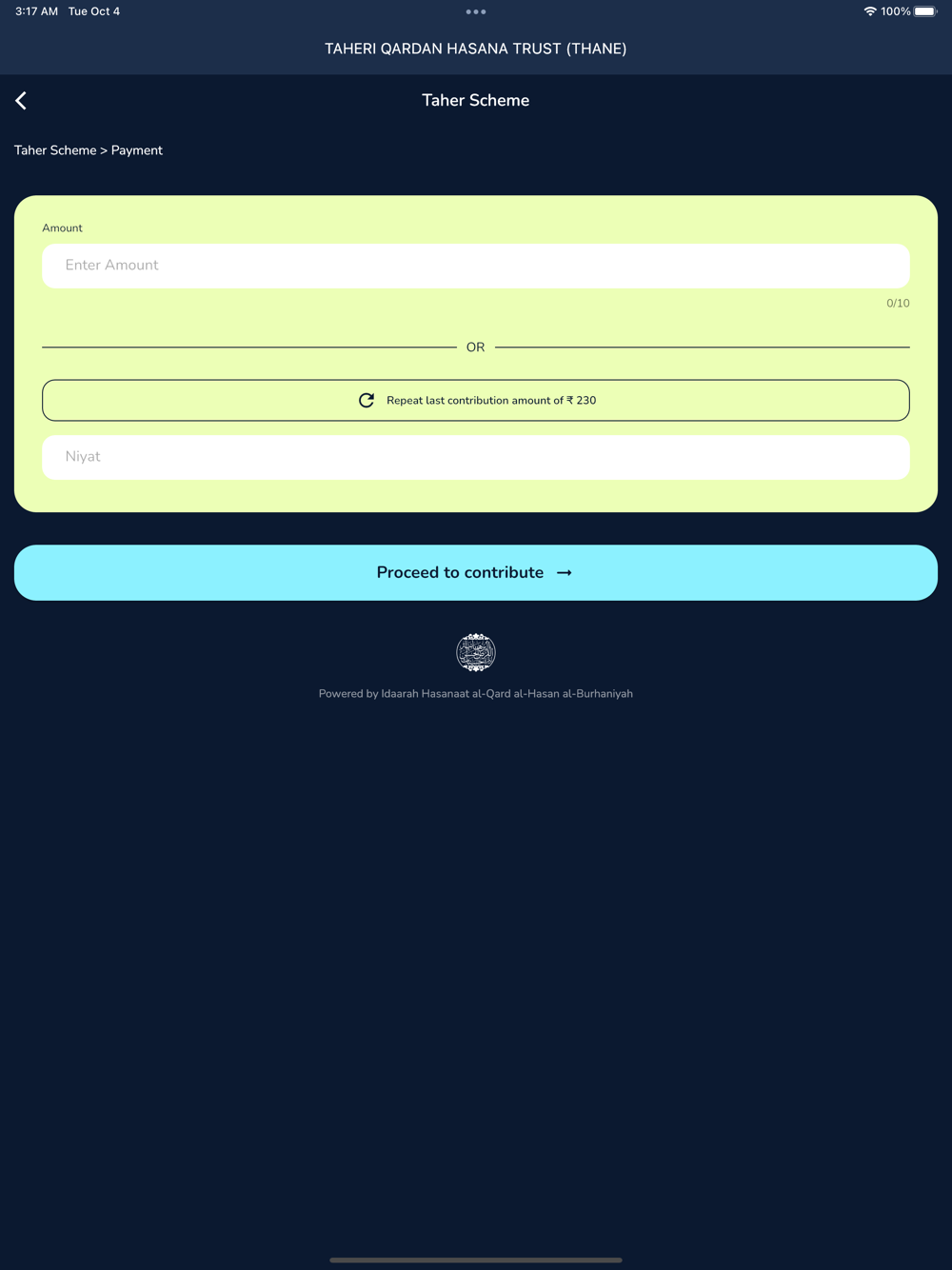 • Check their balances on the app (Husain Scheme, Taher Scheme & Qardan Hasana)