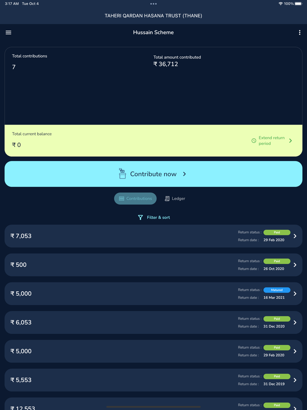 • Download their personal ledgers (Husain Scheme & Qardan Hasana)