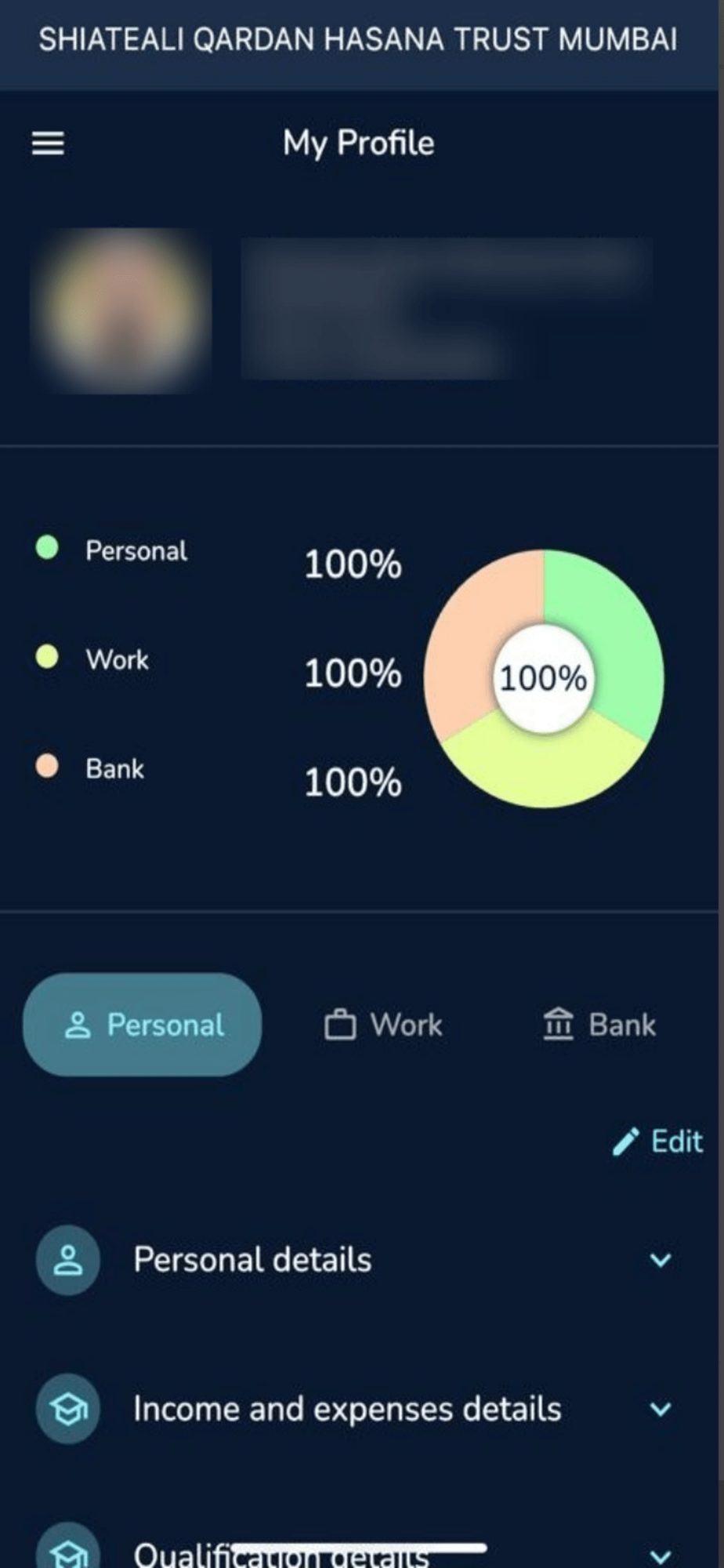 • Complete their Personal & Bank profile directly from the App