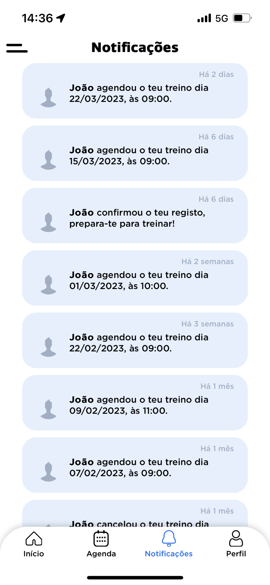 Controlo de Sessões de Treino Disponíveis - com esta funcionalidade tanto tu (PT) como o cliente têm controlo total das sessões disponíveis e serão notificados quando esta estiver prestes a expirar;