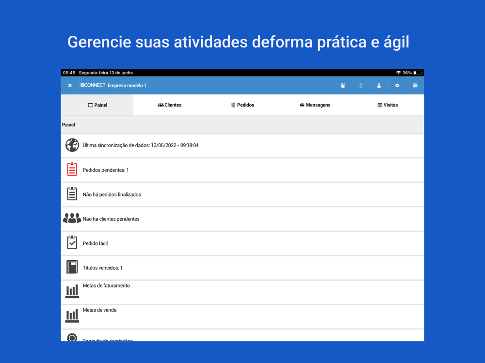 Aplicativo de força de vendas para usuários do sistema RConnect.