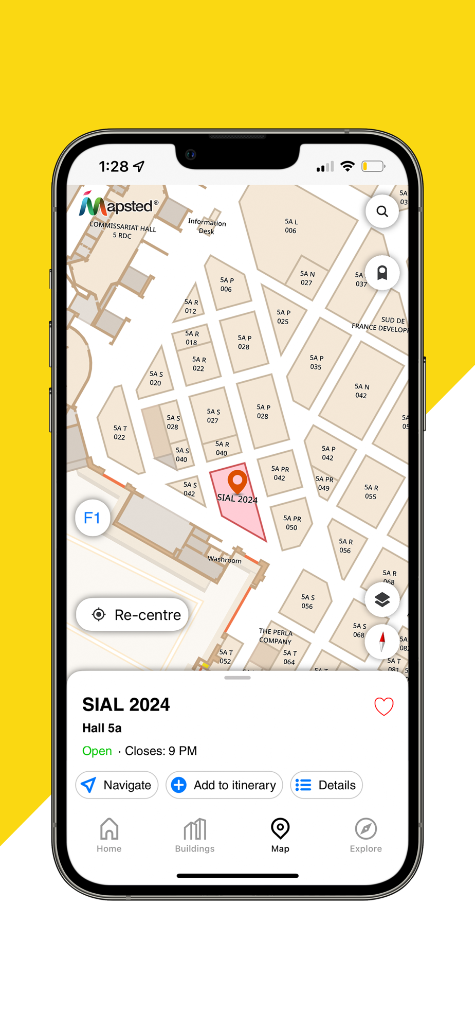 - Share your position in the exhibition in real time with another user (colleague, exhibitor, visitor, etc.) and meet up faster!