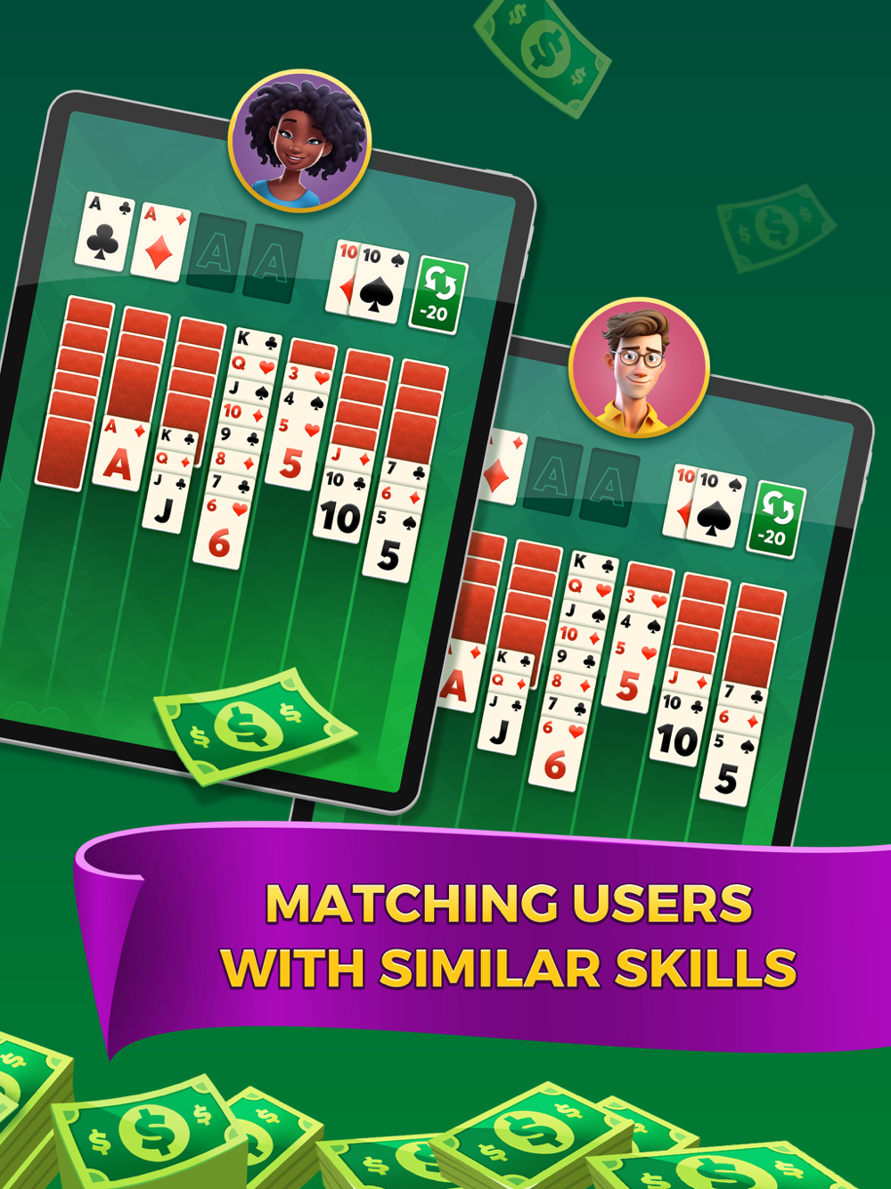 Try this NEW! Amazing! Beautiful! Solitaire game with easy controls! Earn real cash by mastering the skills of Klondlike and play against real people.